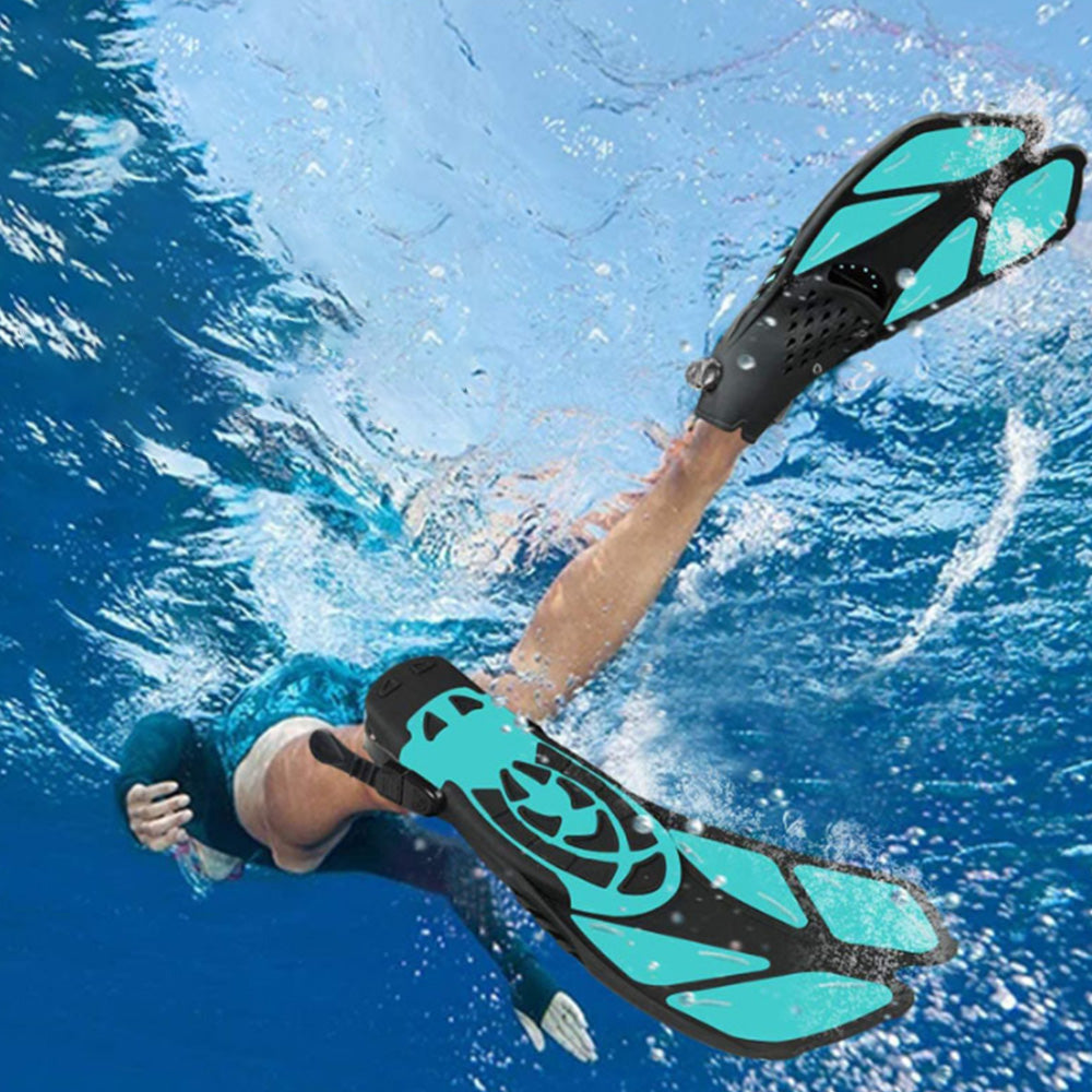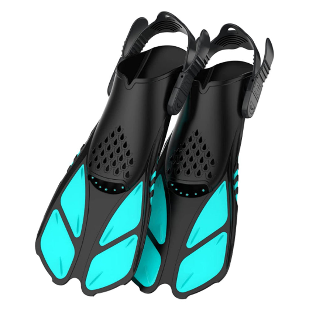 Pair of Snorkel Fins Diving Swim Fins Adjustable Open Heel Swimming Barefoot Flippers Cyan
