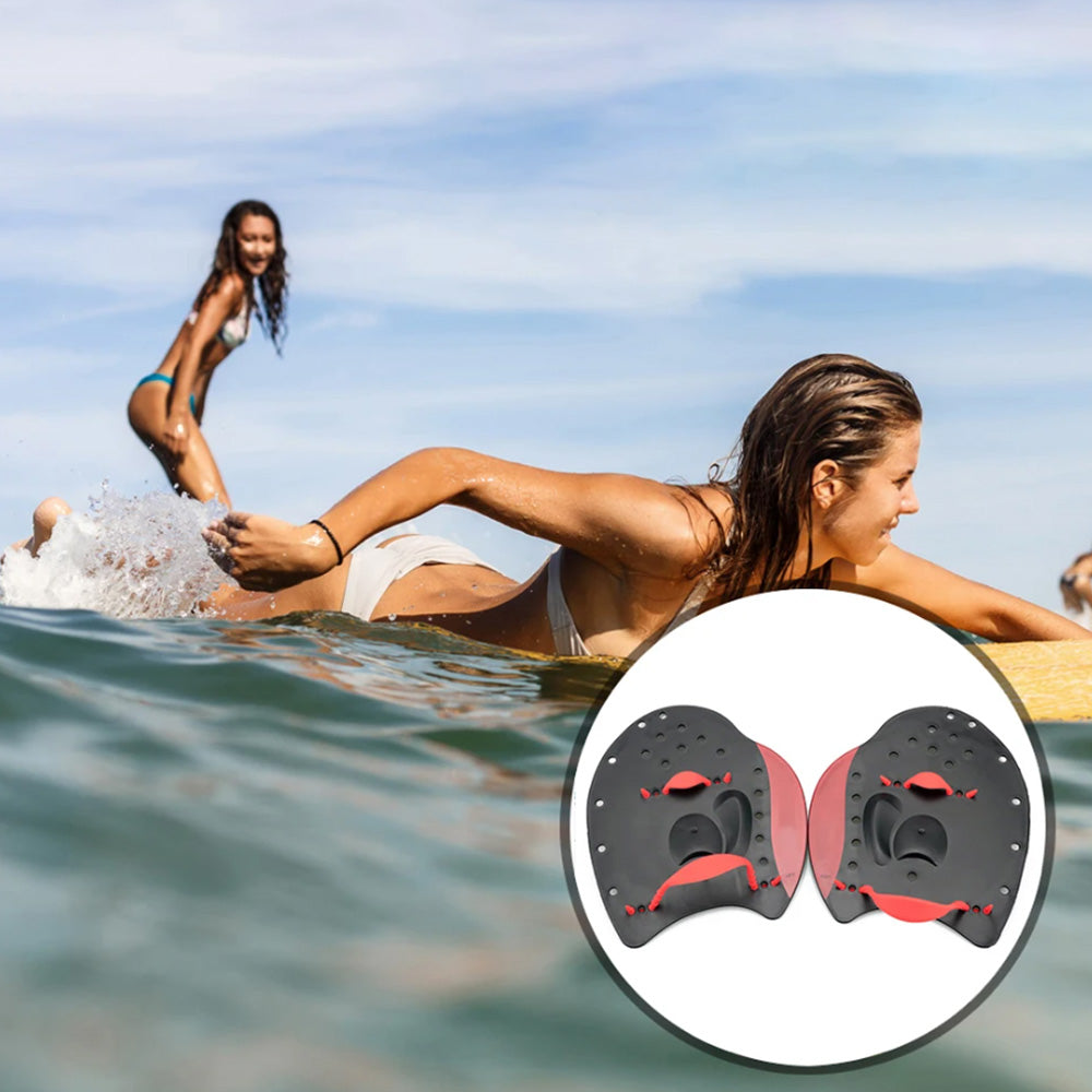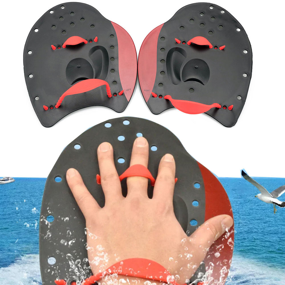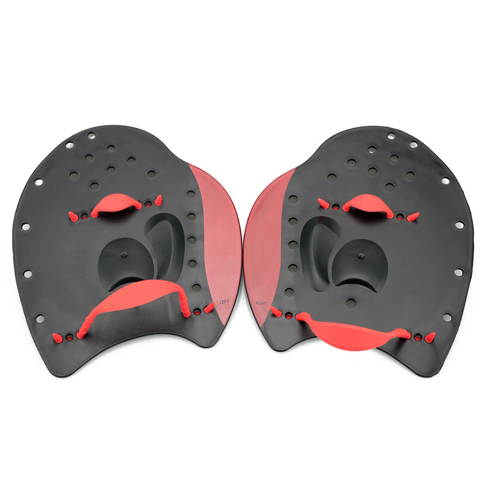 Pair of Unisex Swim Hand Paddles with Adjustable Straps Swimming Training Aid Red