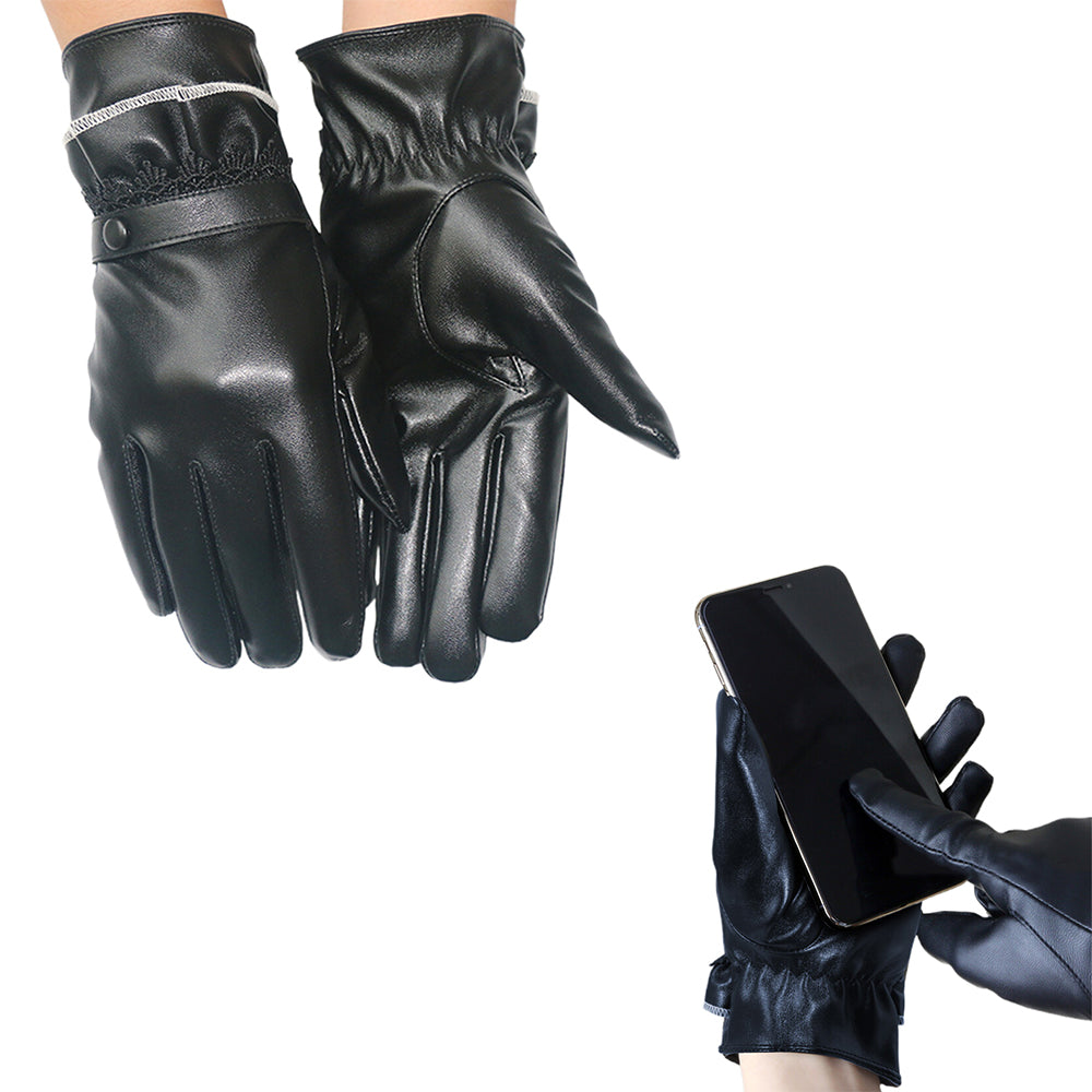 Pair of Women Winter Gloves Touch Screen Driving Warm PU Leather Gloves Style 2
