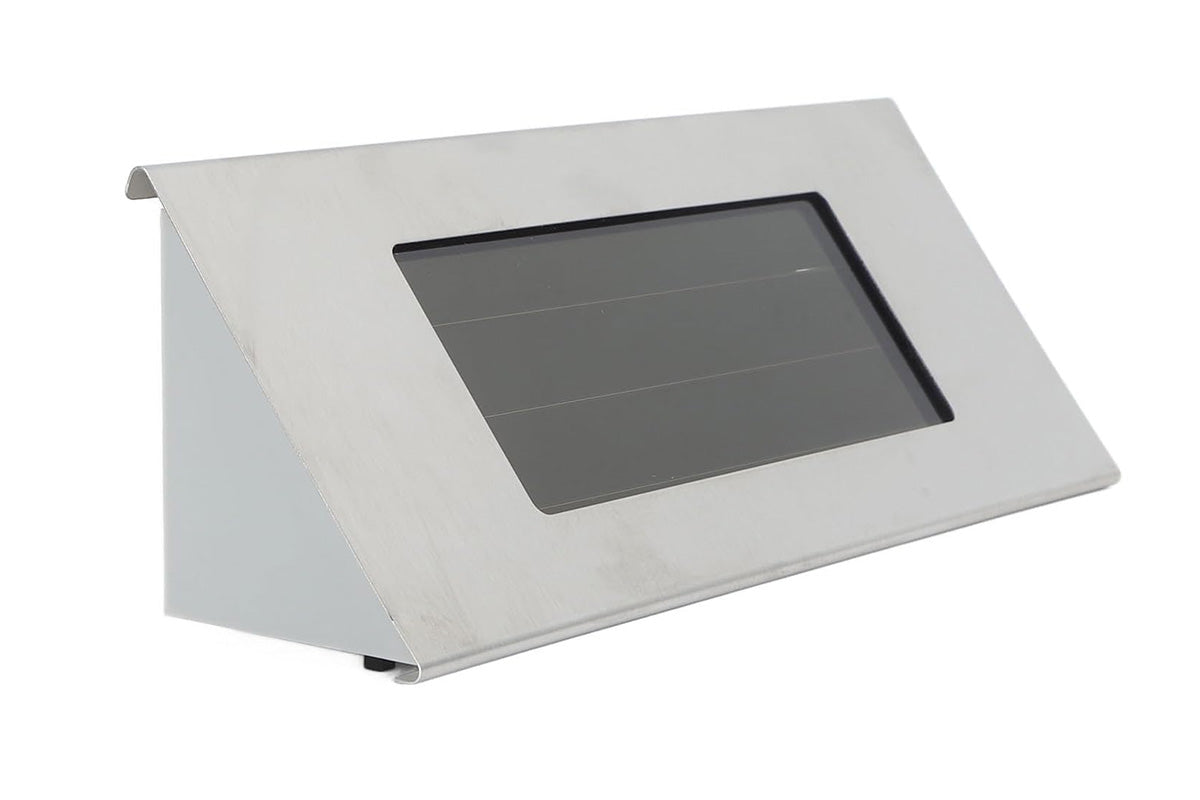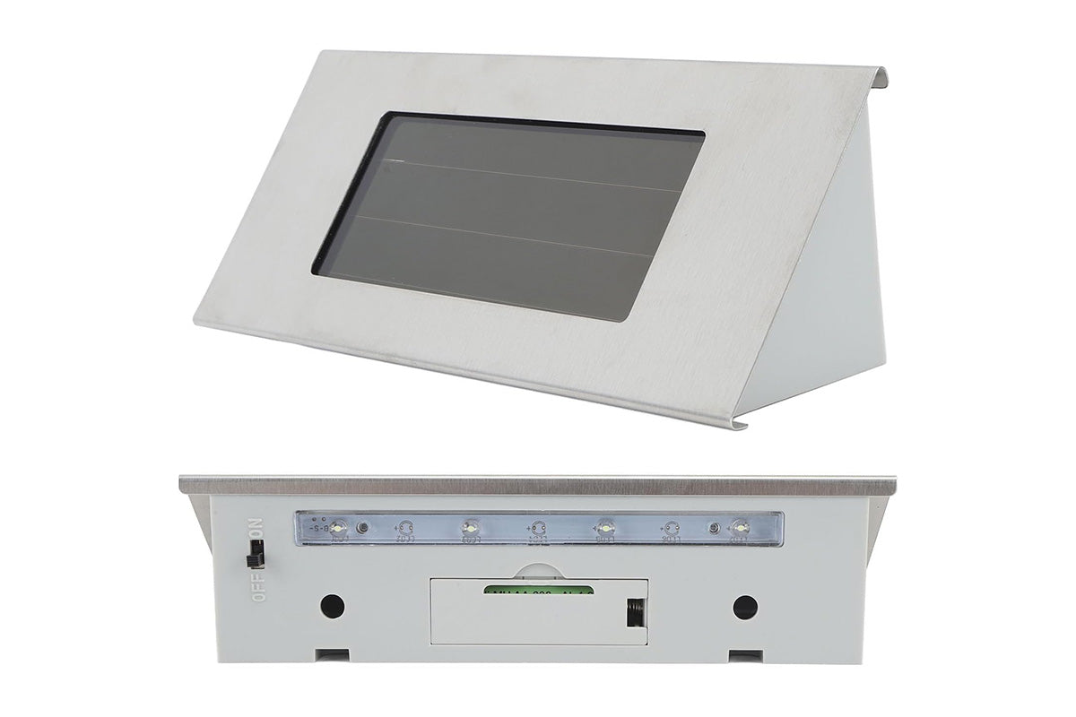 - Efficient Solar Power System: Features a high-performance amorphous solar panel (2.8V/150mA) and waterproof stainless steel design; no wiring required. The sloped panel prevents water buildup and ensures maximum sunlight absorption.