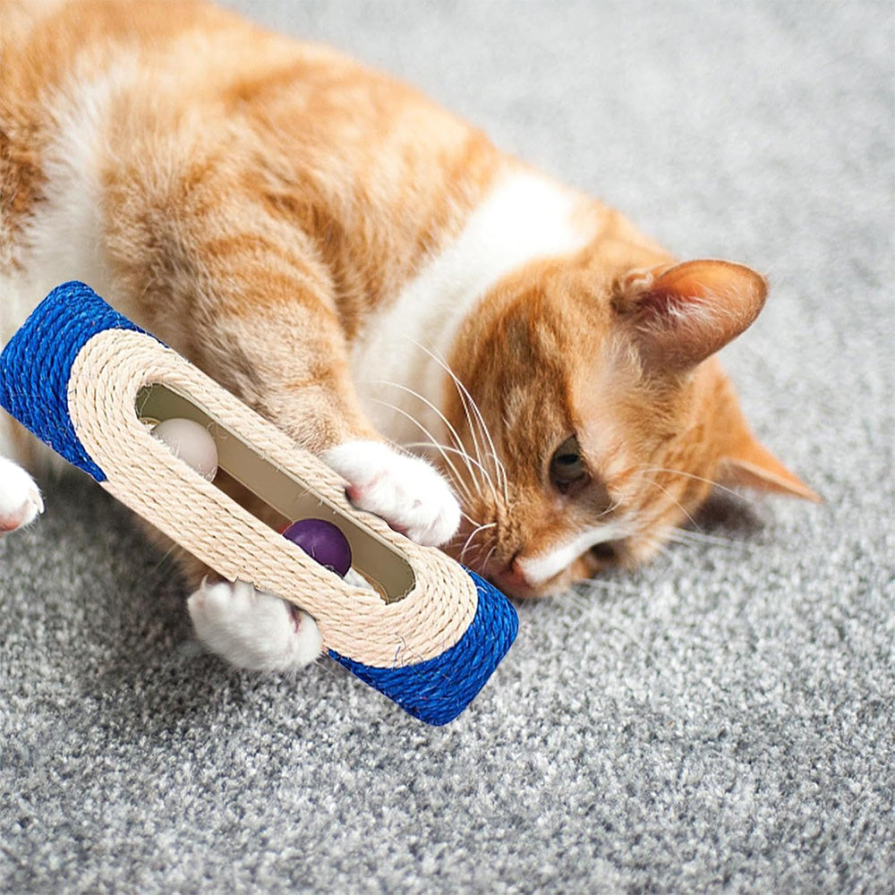 This sisal rolling post cat toy features sound balls, designed to engage and entertain your cat while satisfying its scratching instinct.