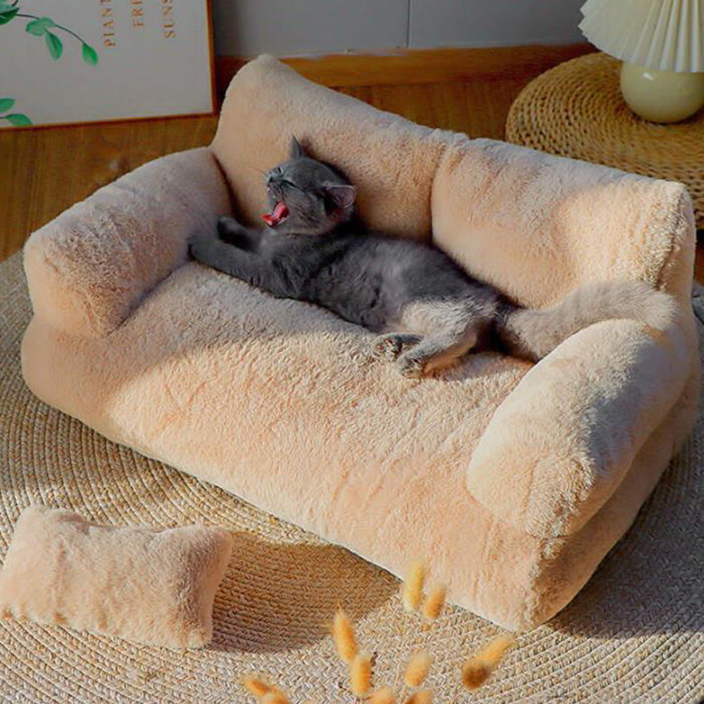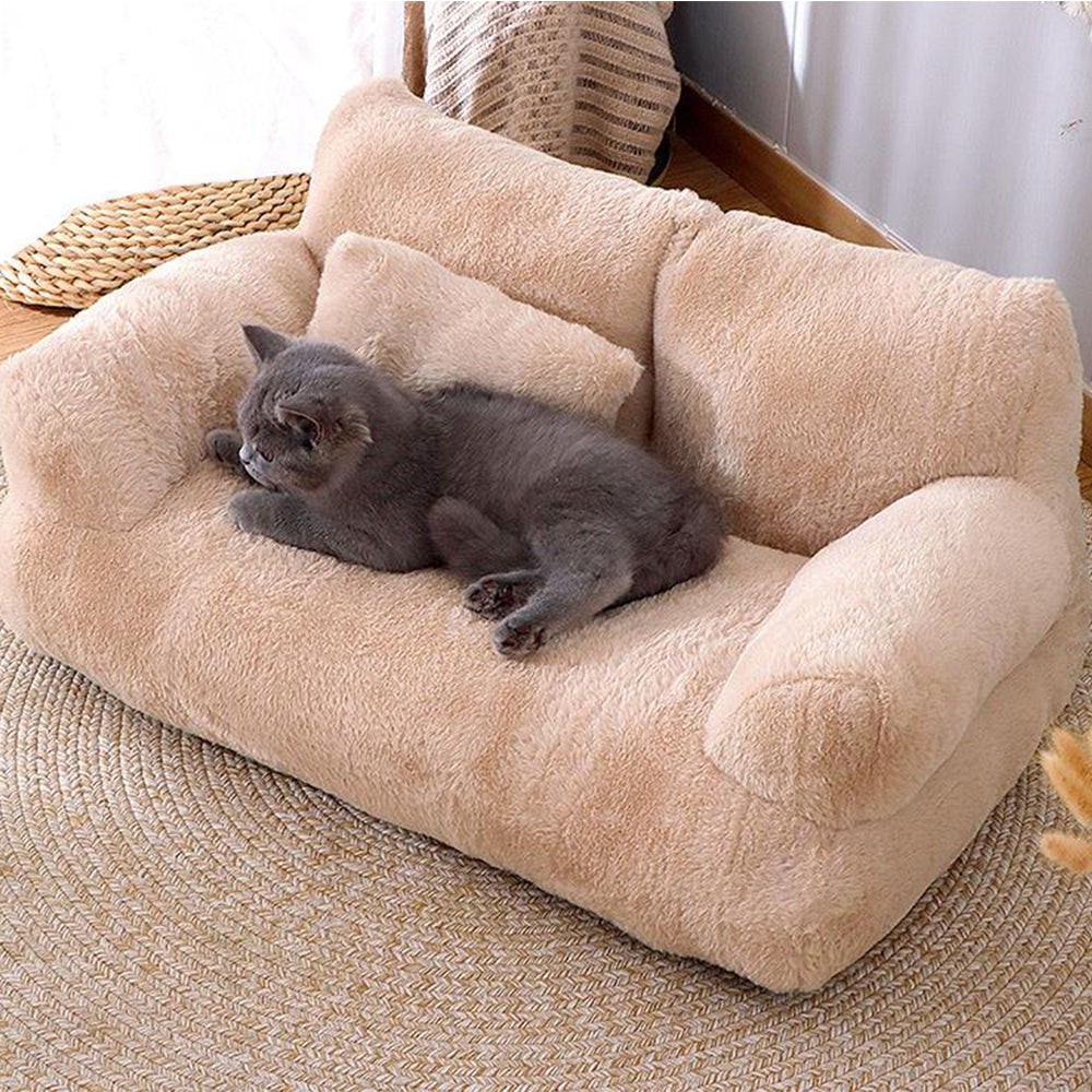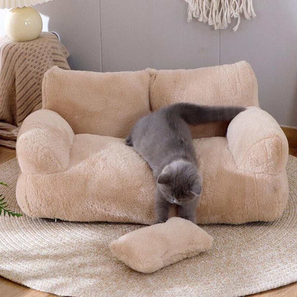 Pet Couch Bed Fluffy Sofa for Medium Small Dogs Cats Coffee