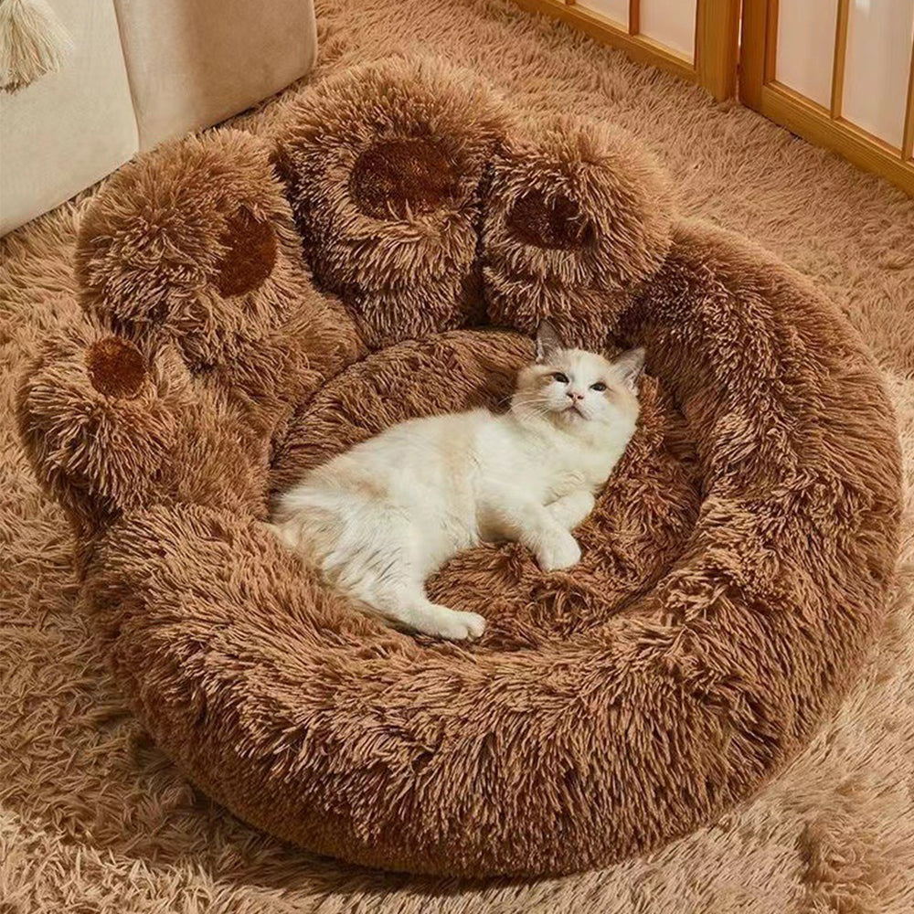 Pet Sofa Cute Bear Paw Shape Cozy Sleeping Bed for Dog Cat Coffee