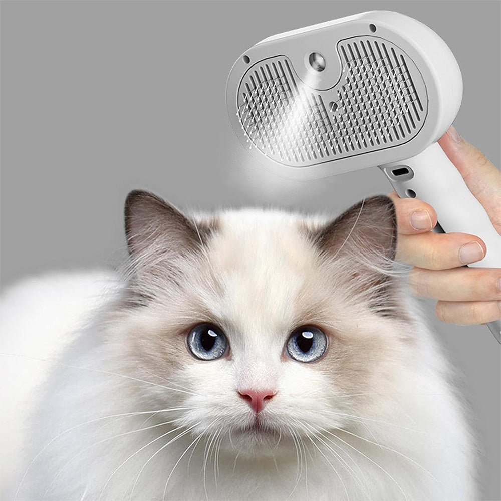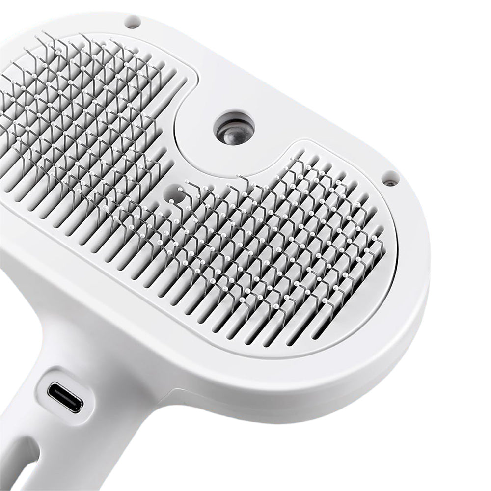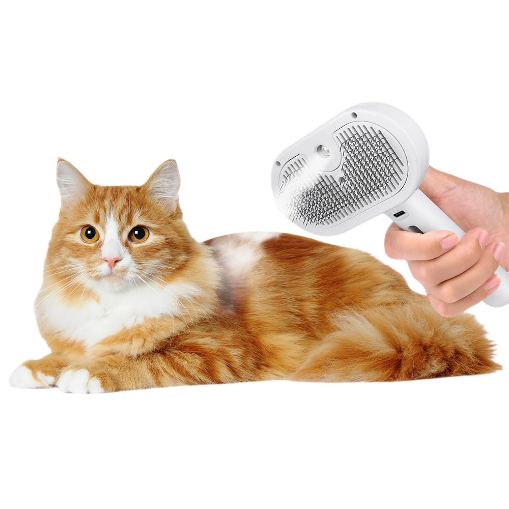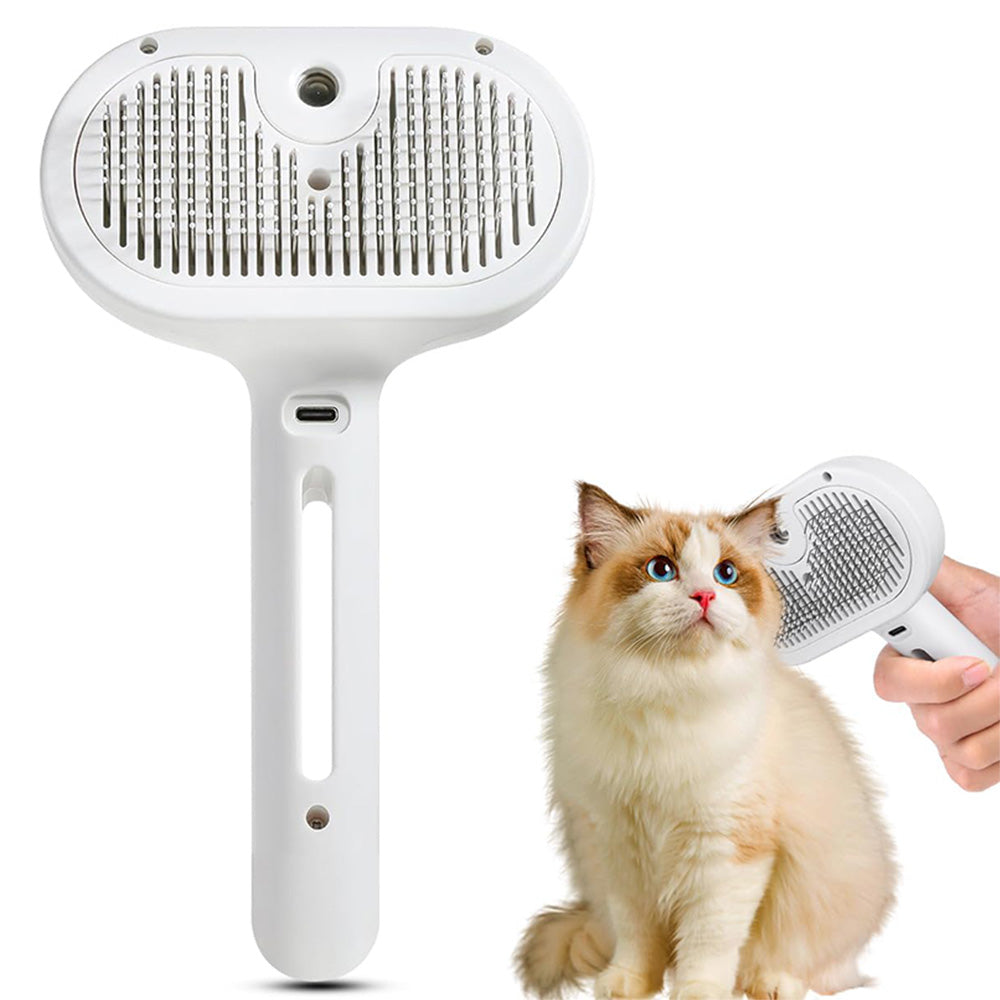 Pet Steam Brush Cat Dog Spray Hair Removal Comb for Shedding Grooming White