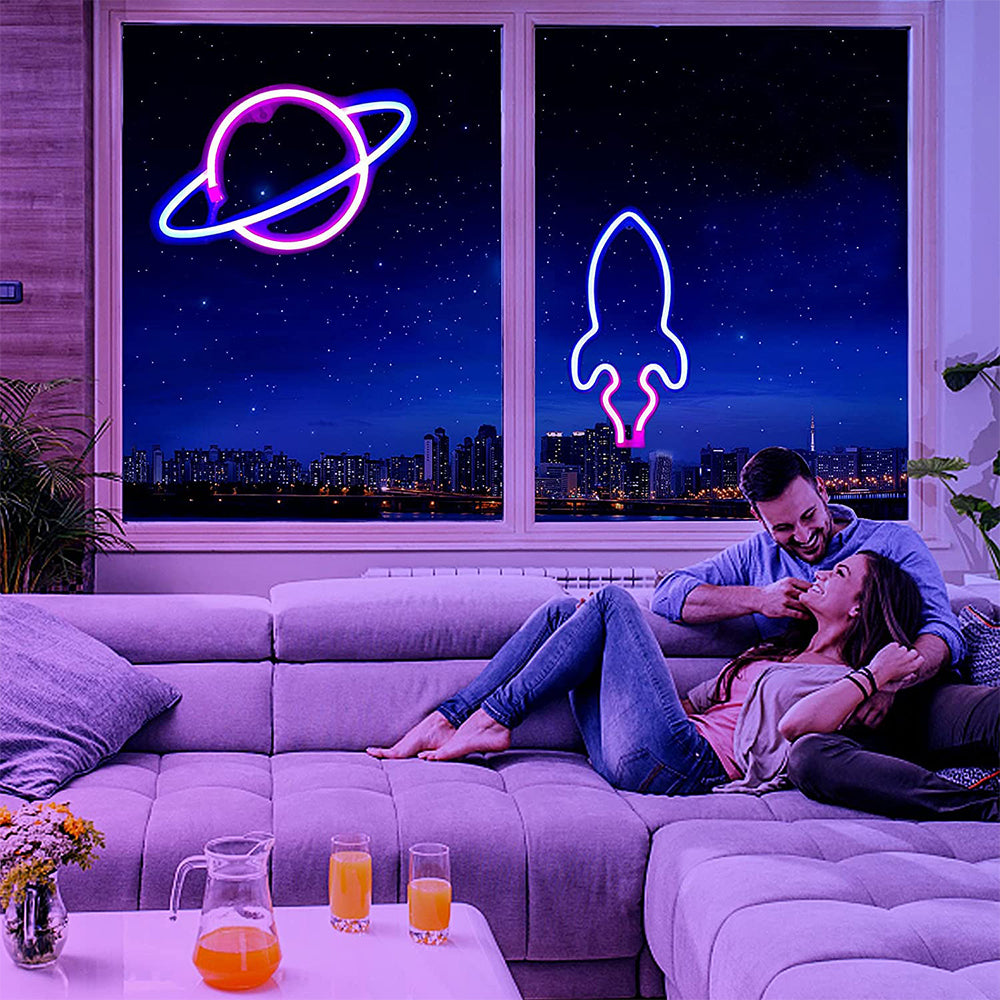 Planet Rocket LED Neon Light Wall Hanging Lamp Home Decoration Accessory