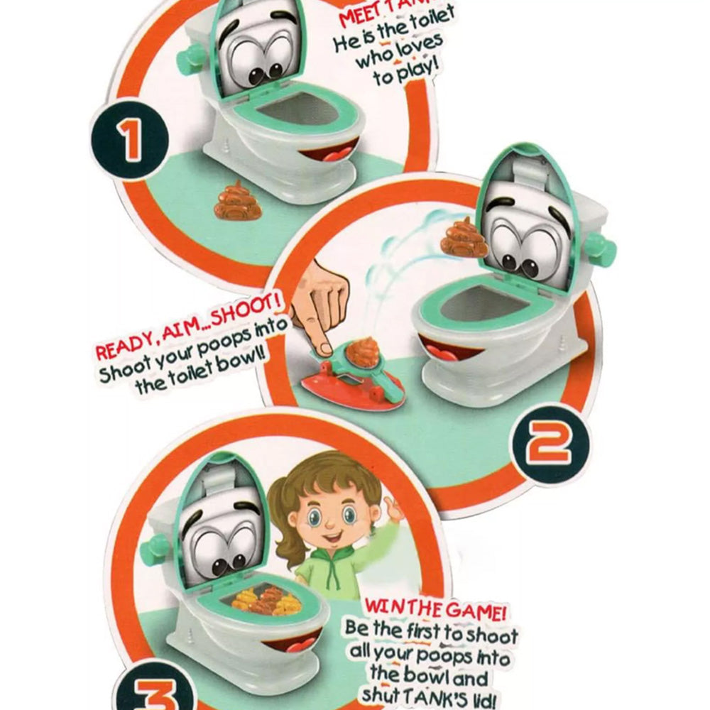 - The game encourages kids to improve their aiming and motor skills as they try to land the foam poop in the toilet.