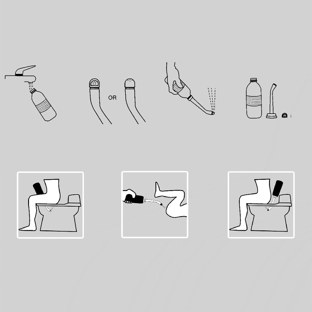 Designed for private part cleansing, this portable bidet bottle features large capacity and 2 different nozzle.