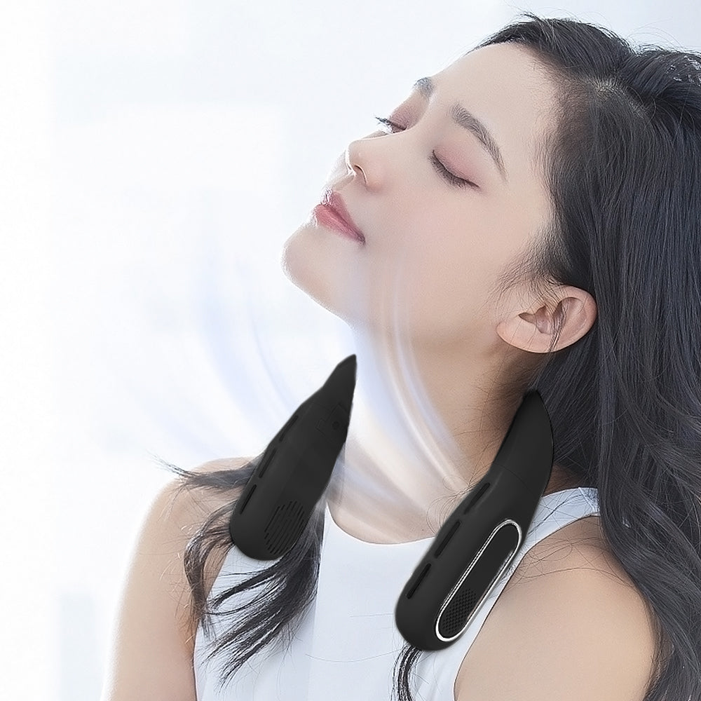 Portable Bladeless Neck Fan Foldable Hands Free Air Cooling Fan Rechargeable Black