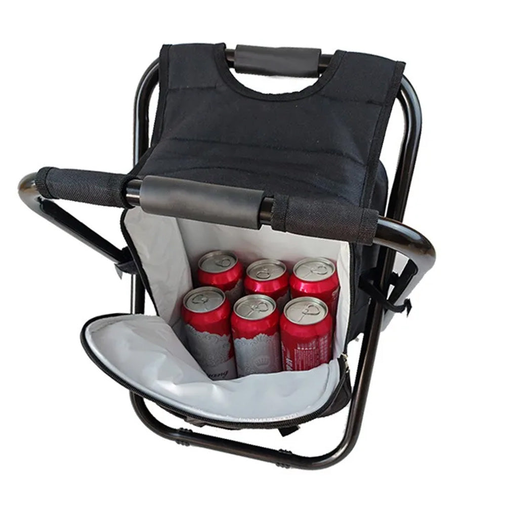 This multi-functional cooler stool serves as both a comfortable folding chair and a portable thermal-insulated backpack.?