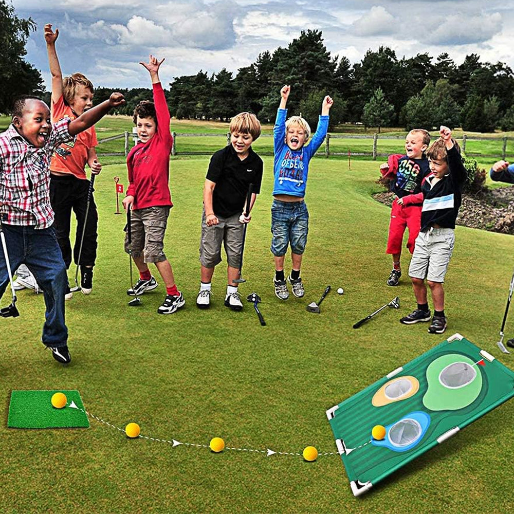 The golf cornhole game set makes you play corn hole throwing games or practice golf chipping, helping you challenge different game fun at the same time.