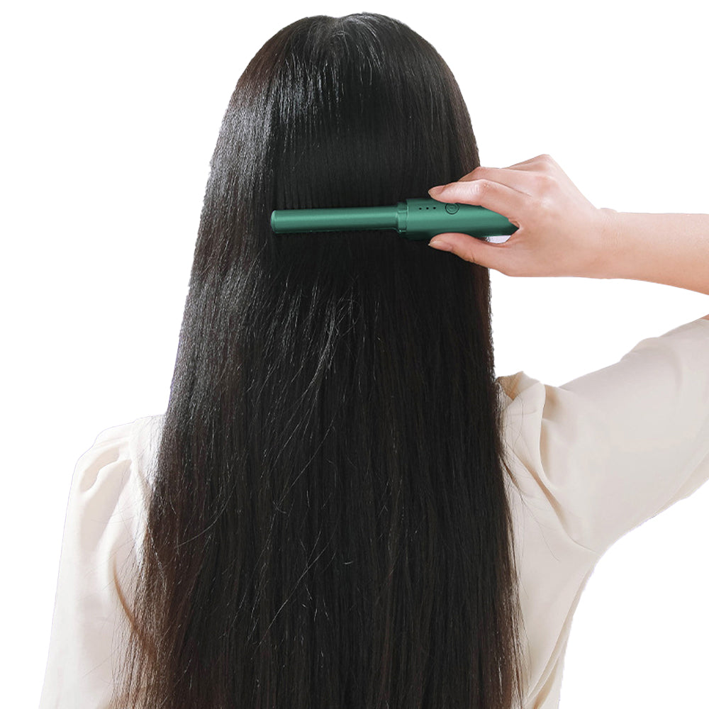 Portable Hair Straightener Comb Rechargeable Mini Hair Straightener Green