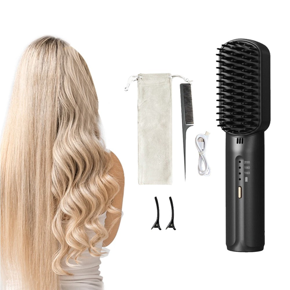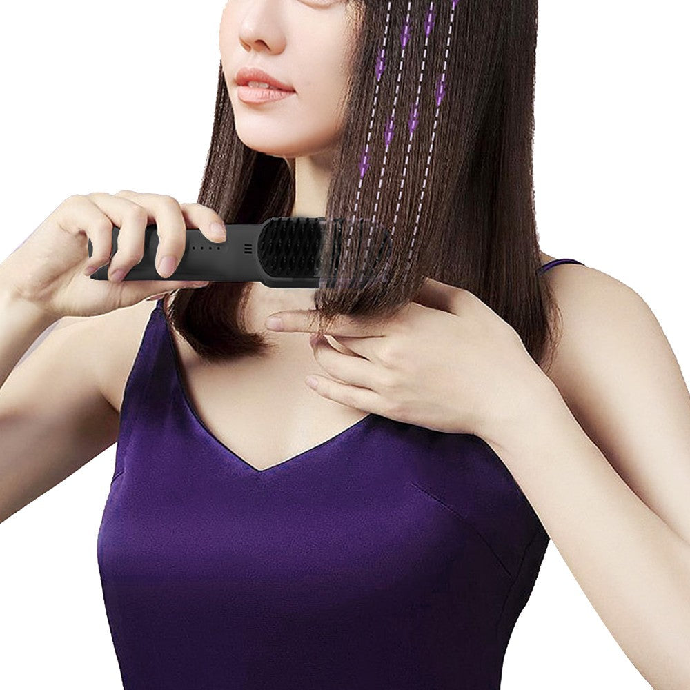 Portable Hair Straightener Rechargeable Negative Ion Straightening Comb Black