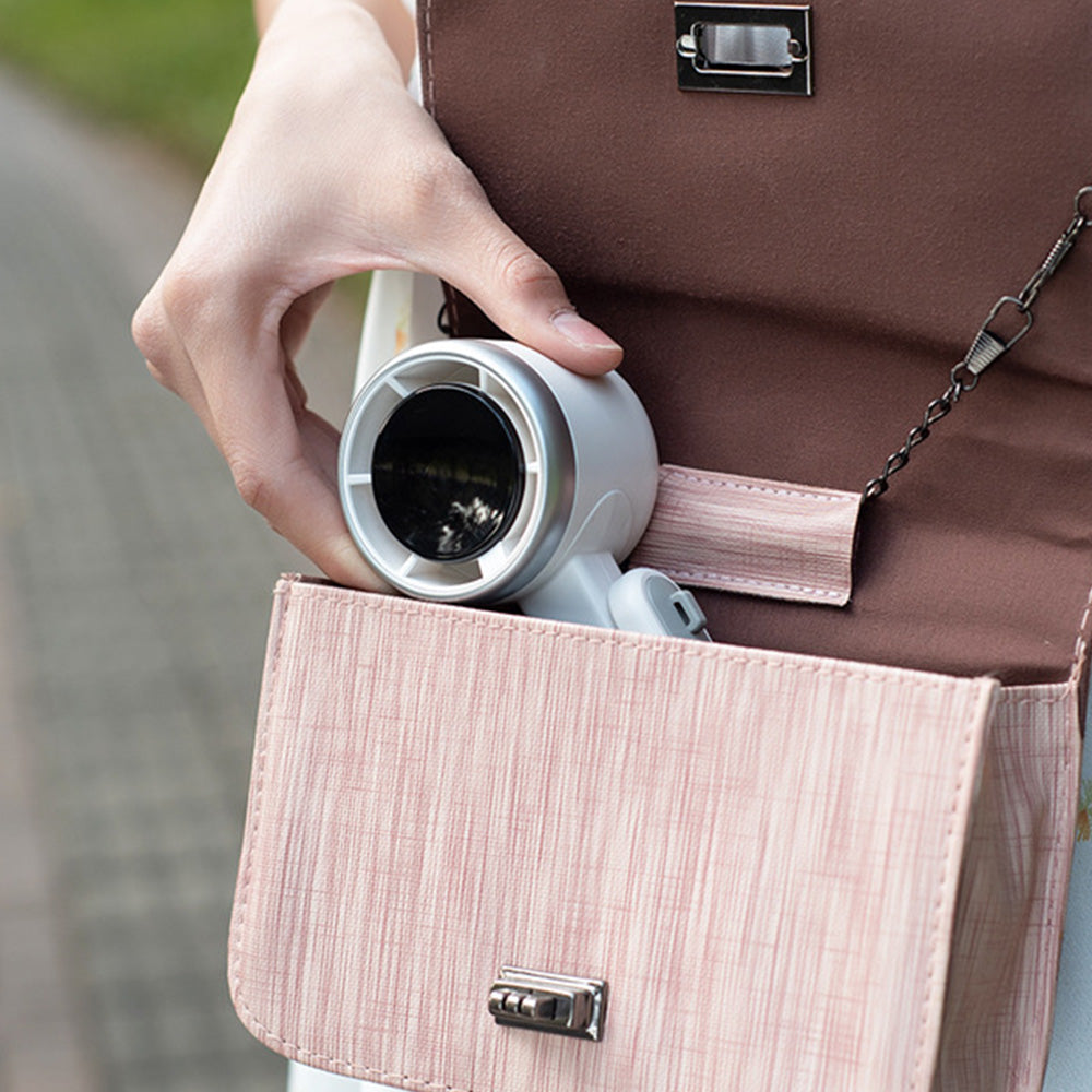 Compact and powerful handheld turbo fan designed for personal cooling on the go.
