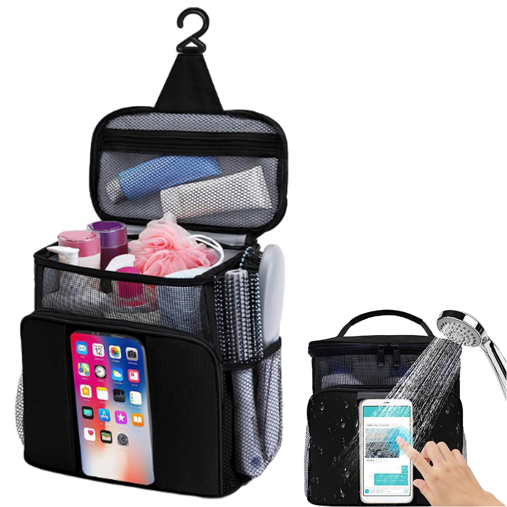 - A durable hook at the top keeps your bathroom bag securely hung, preventing falls, and allowing you to easily hang it on a bathroom door, shower rod, or towel rack for quick access to toiletries.