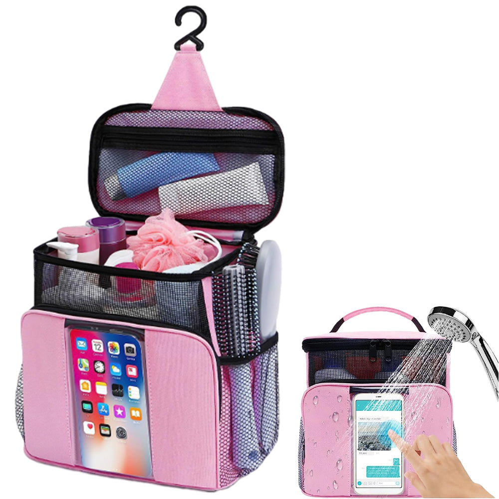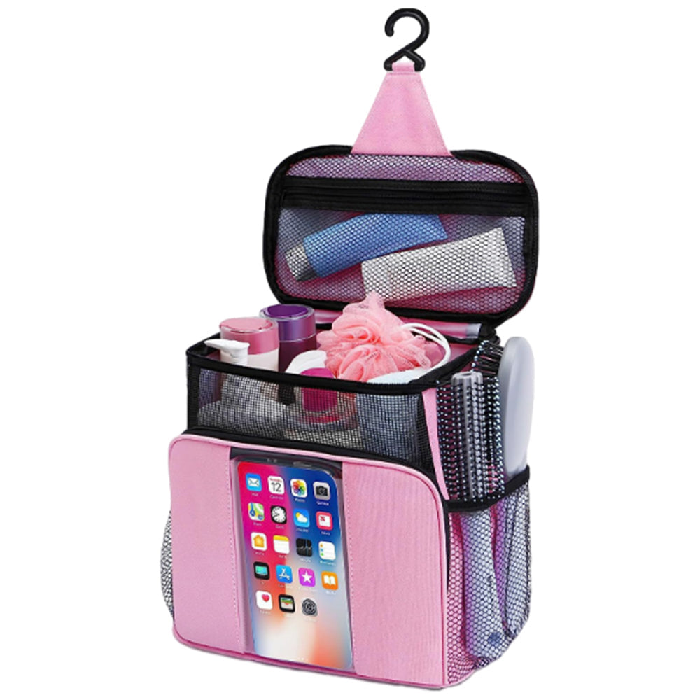 Portable Hanging Toiletry Bag Travel Makeup Storage Bag Mesh Shower Caddy Tote Pink