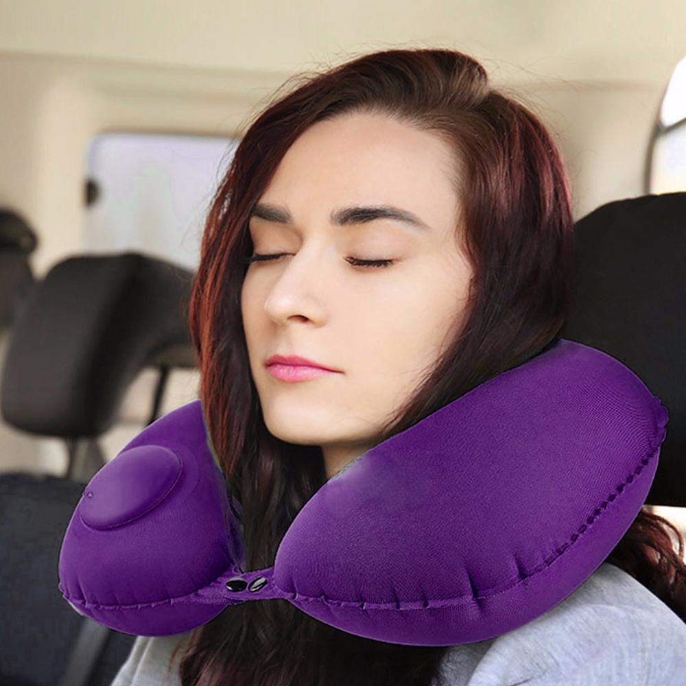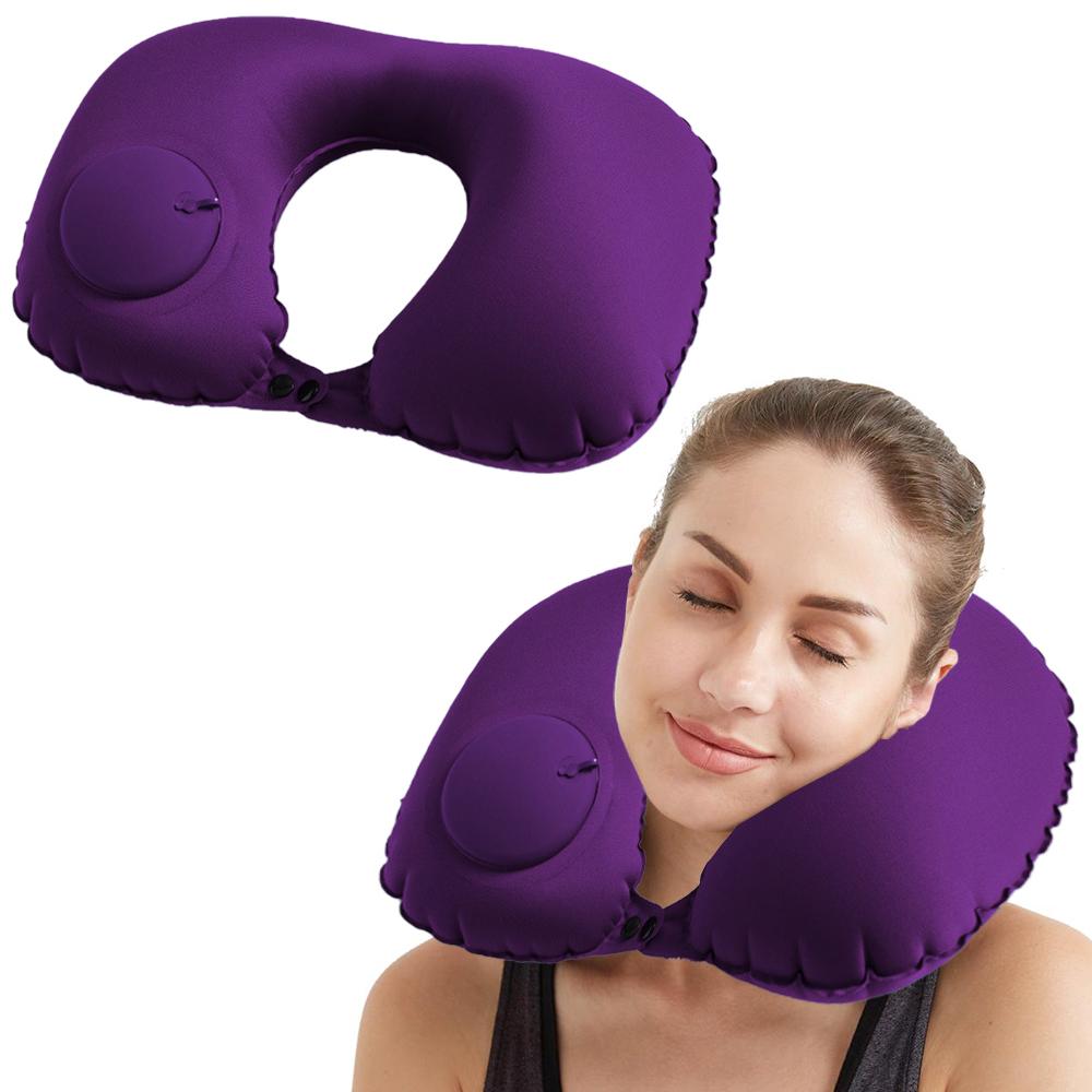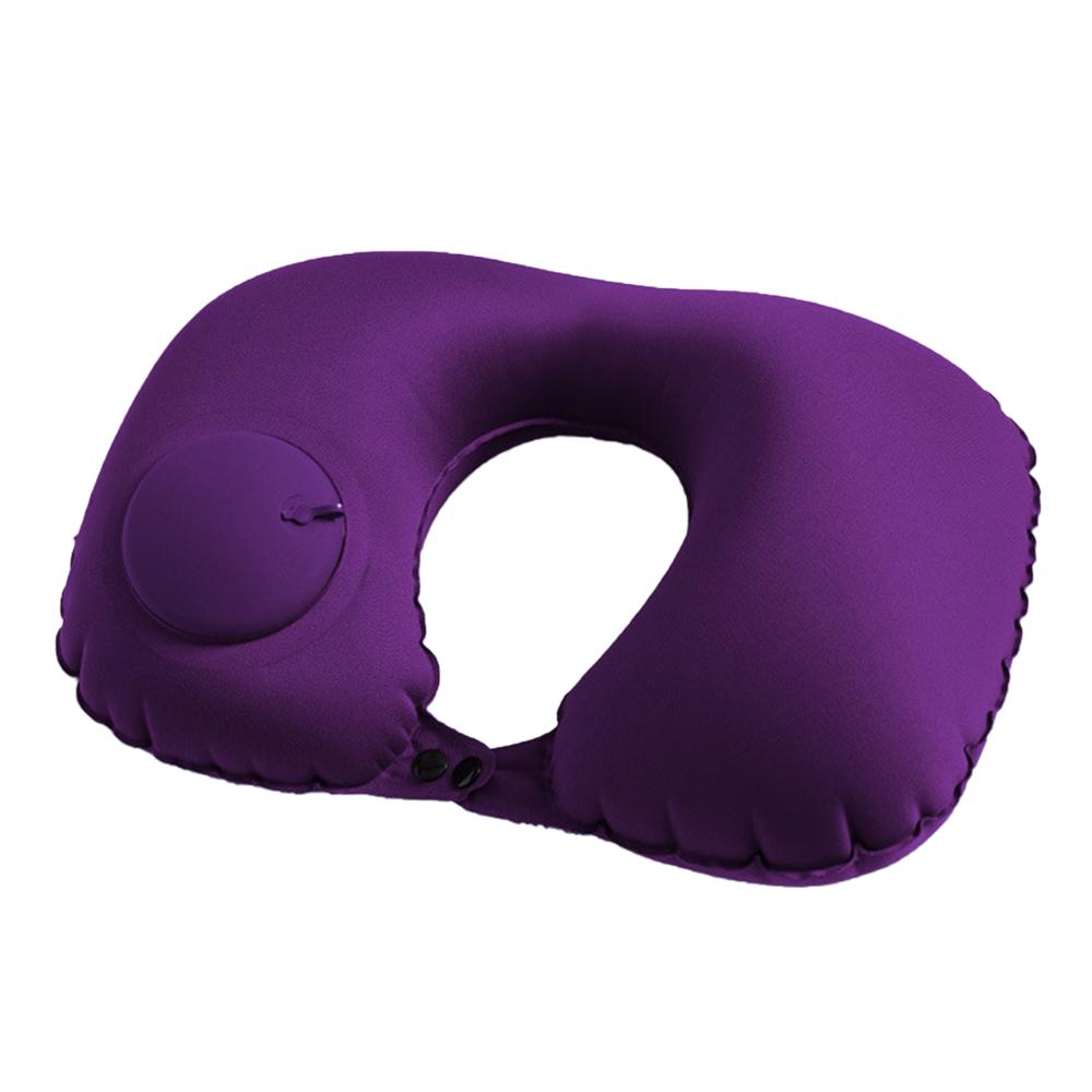Portable Push-type Inflatable U-Shaped Travel Neck Pillow Car Headrest Cushion - Purple