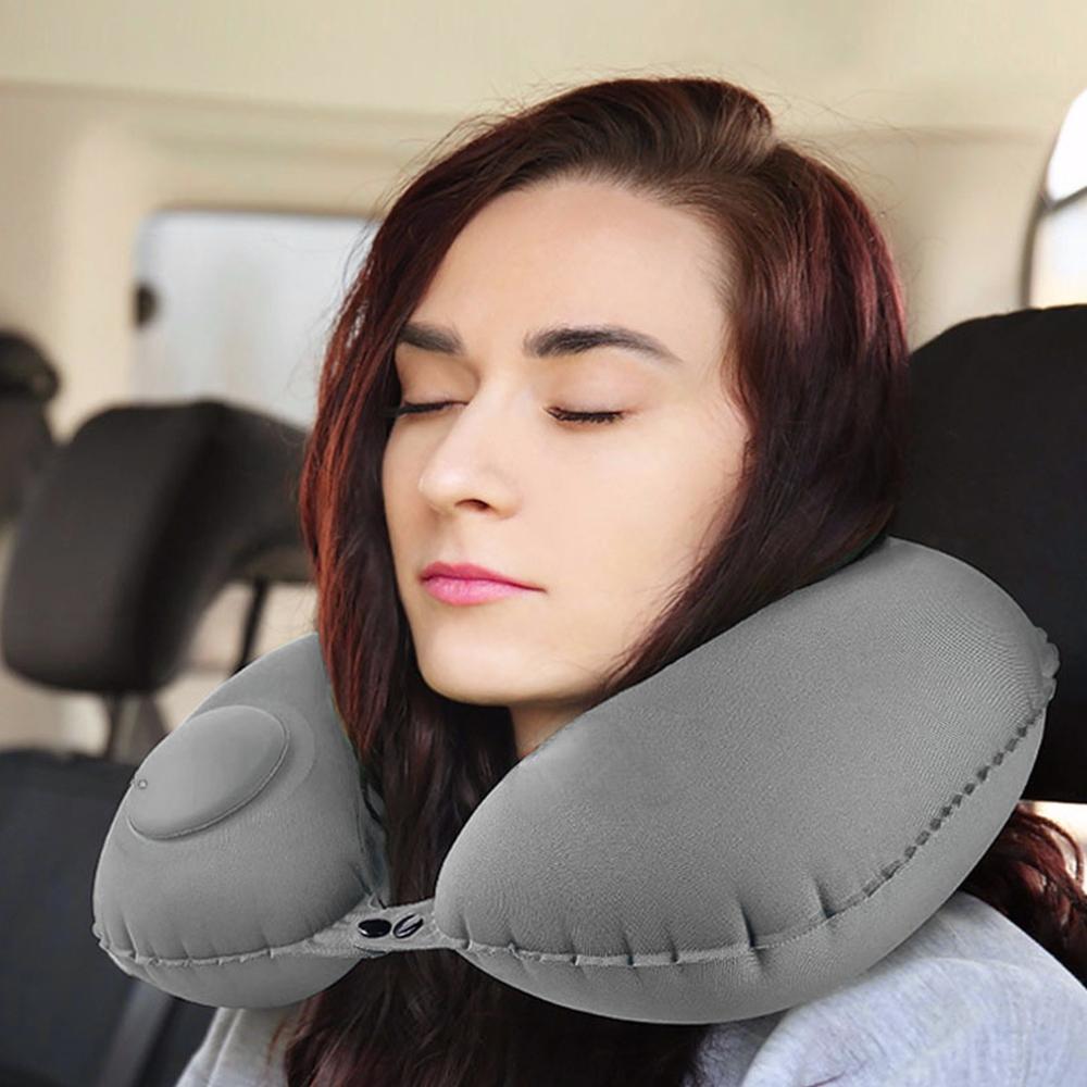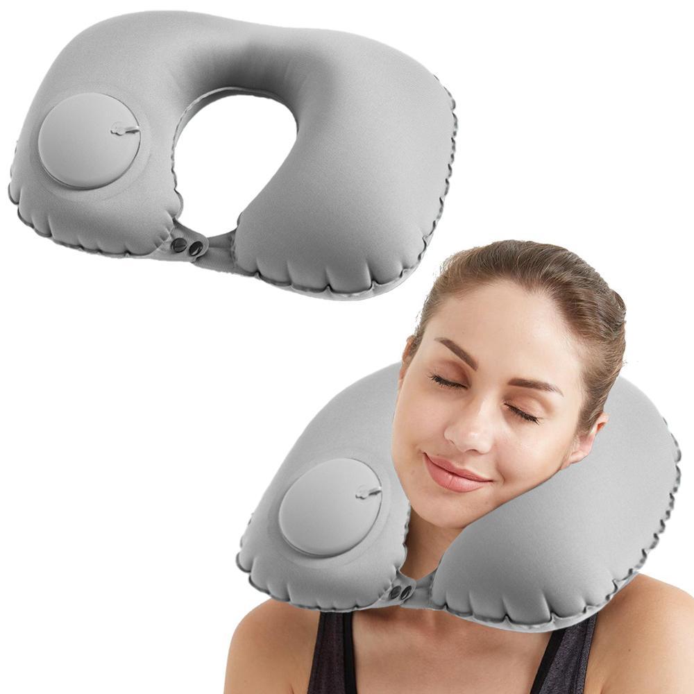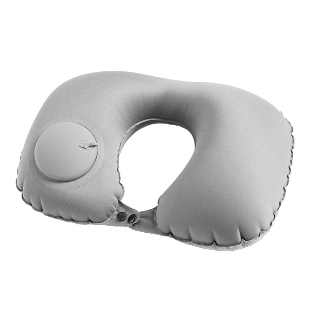 Portable Push-type Inflatable U-Shaped Travel Neck Pillow Car Headrest Cushion -Grey