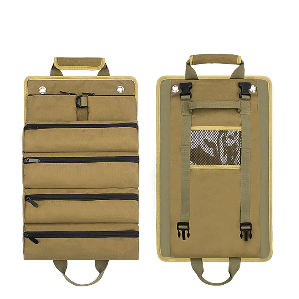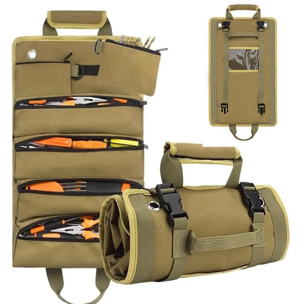 Portable Roll Up Tool Bag Hardware Repair Tool Organizer for Electrician Mechanic Khaki