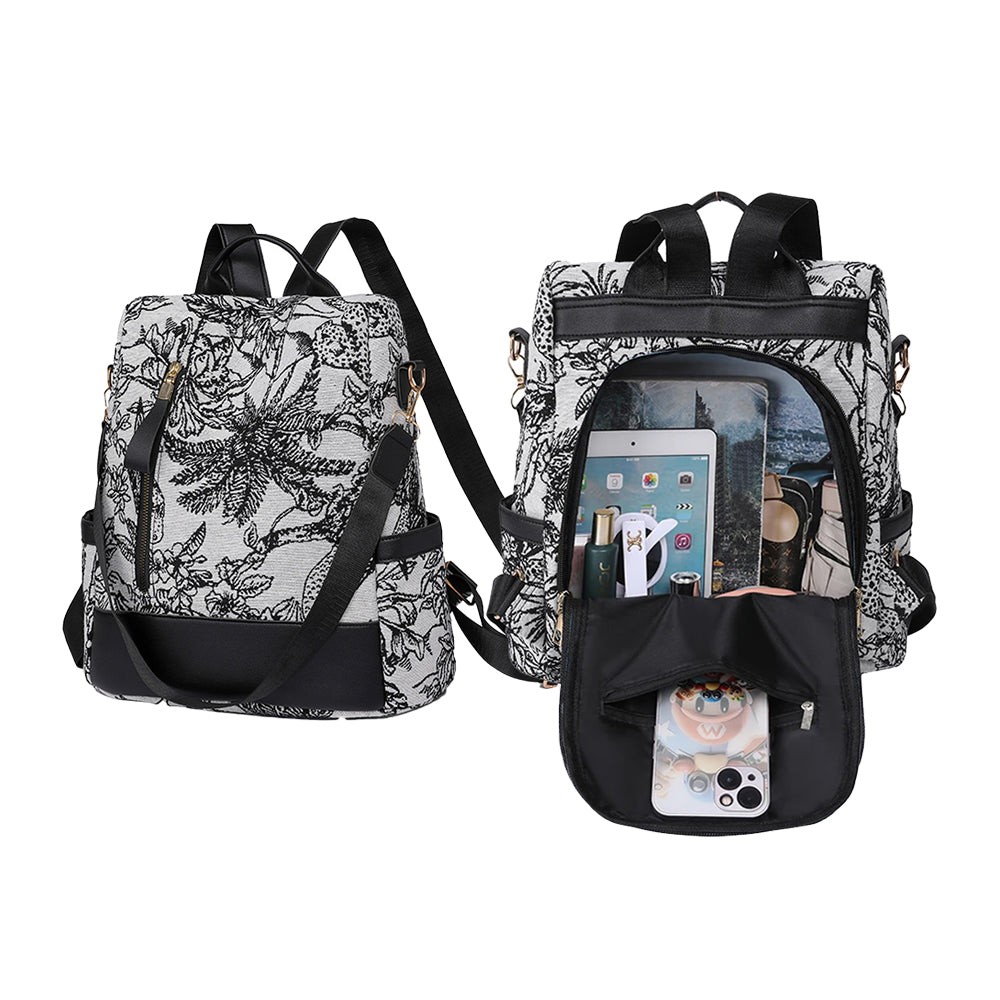 Printed Anti-theft Backpack Multifunctional Large Capacity Travel Bag Black