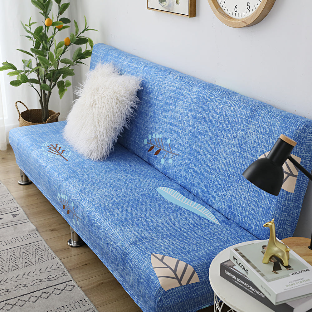 Printed Armless Futon Slipcovers Stretch Folding Sofa Bed Cover with Elastic Bottom -Blue