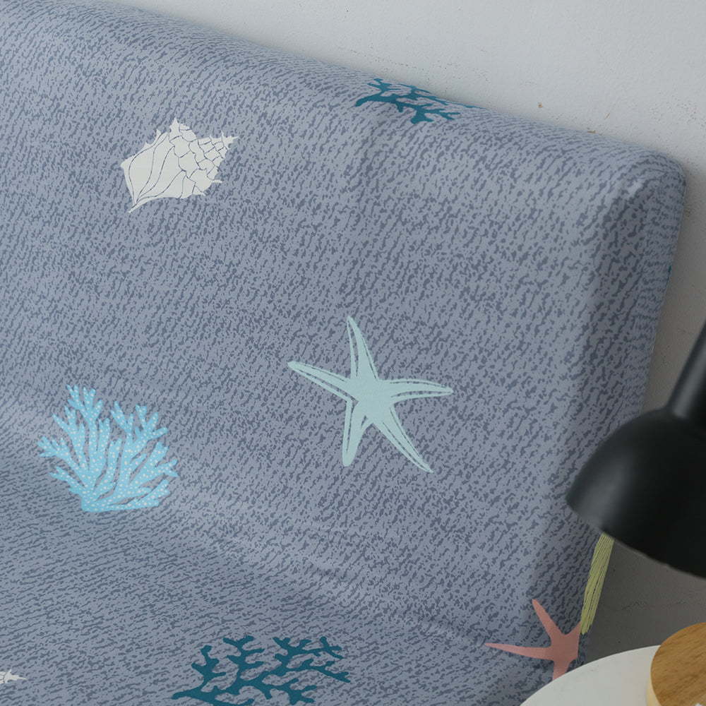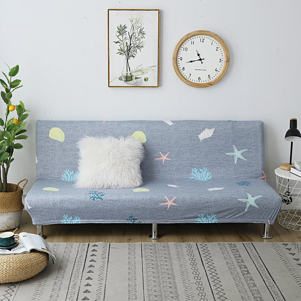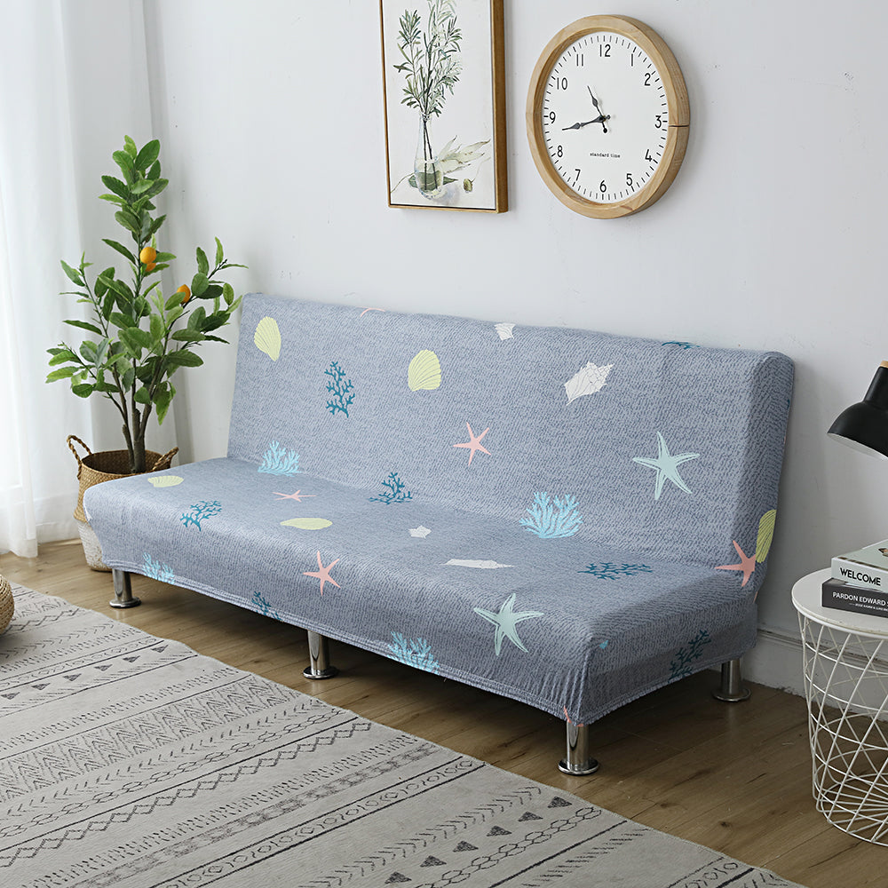Printed Armless Futon Slipcovers Stretch Folding Sofa Bed Cover with Elastic Bottom -Grey