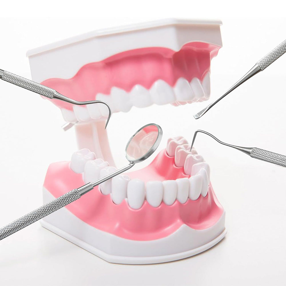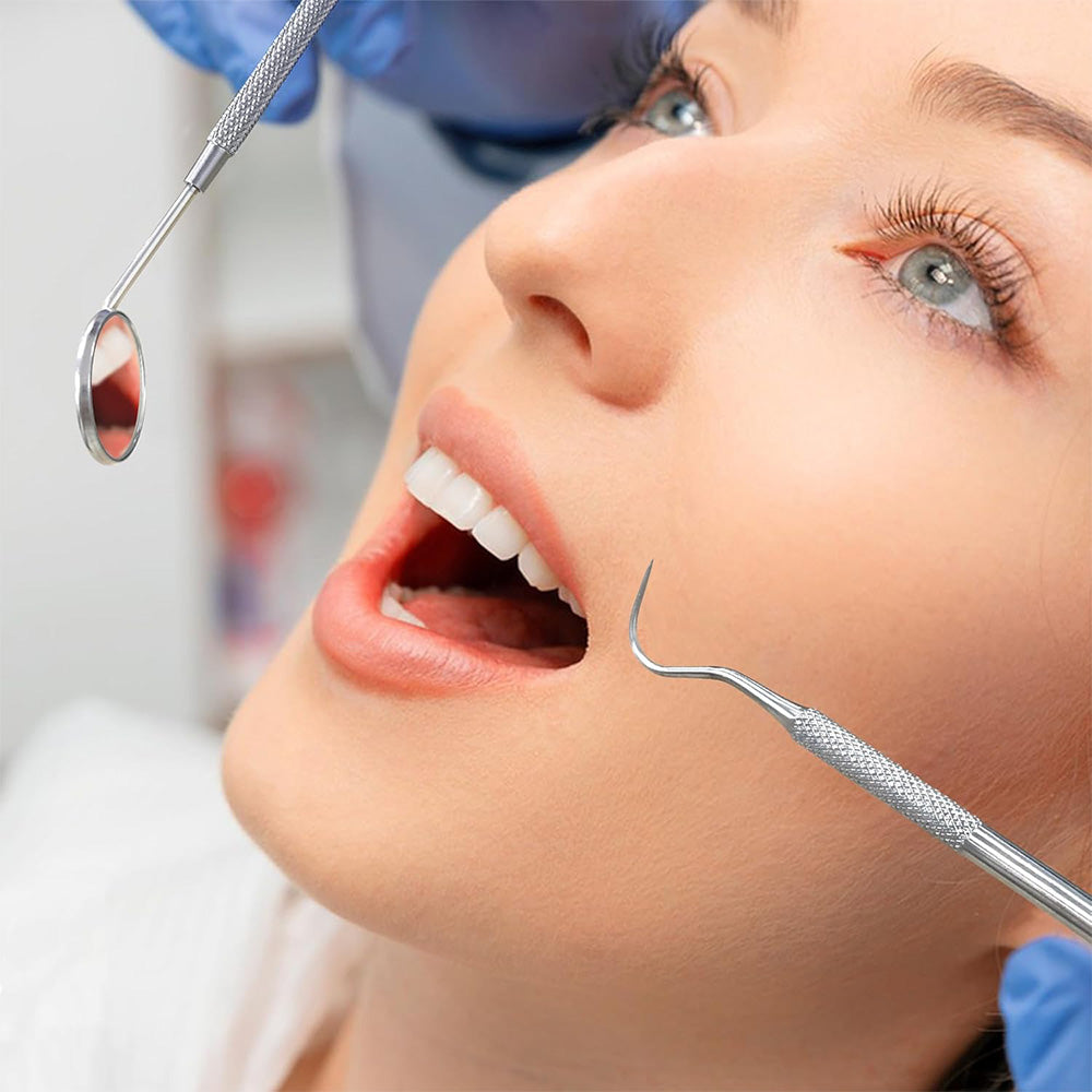 Medical-grade 6-piece dental tool set featuring mirror, probe and scalers for effective at-home oral care and plaque removal.