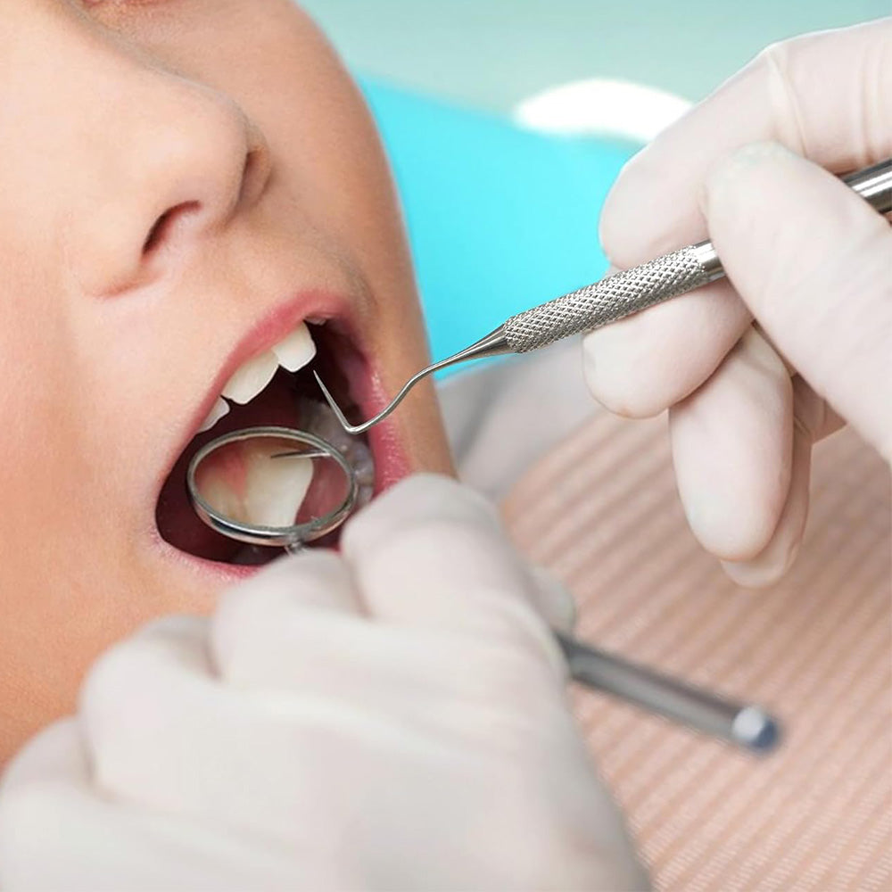 Medical-grade 6-piece dental tool set featuring mirror, probe and scalers for effective at-home oral care and plaque removal.