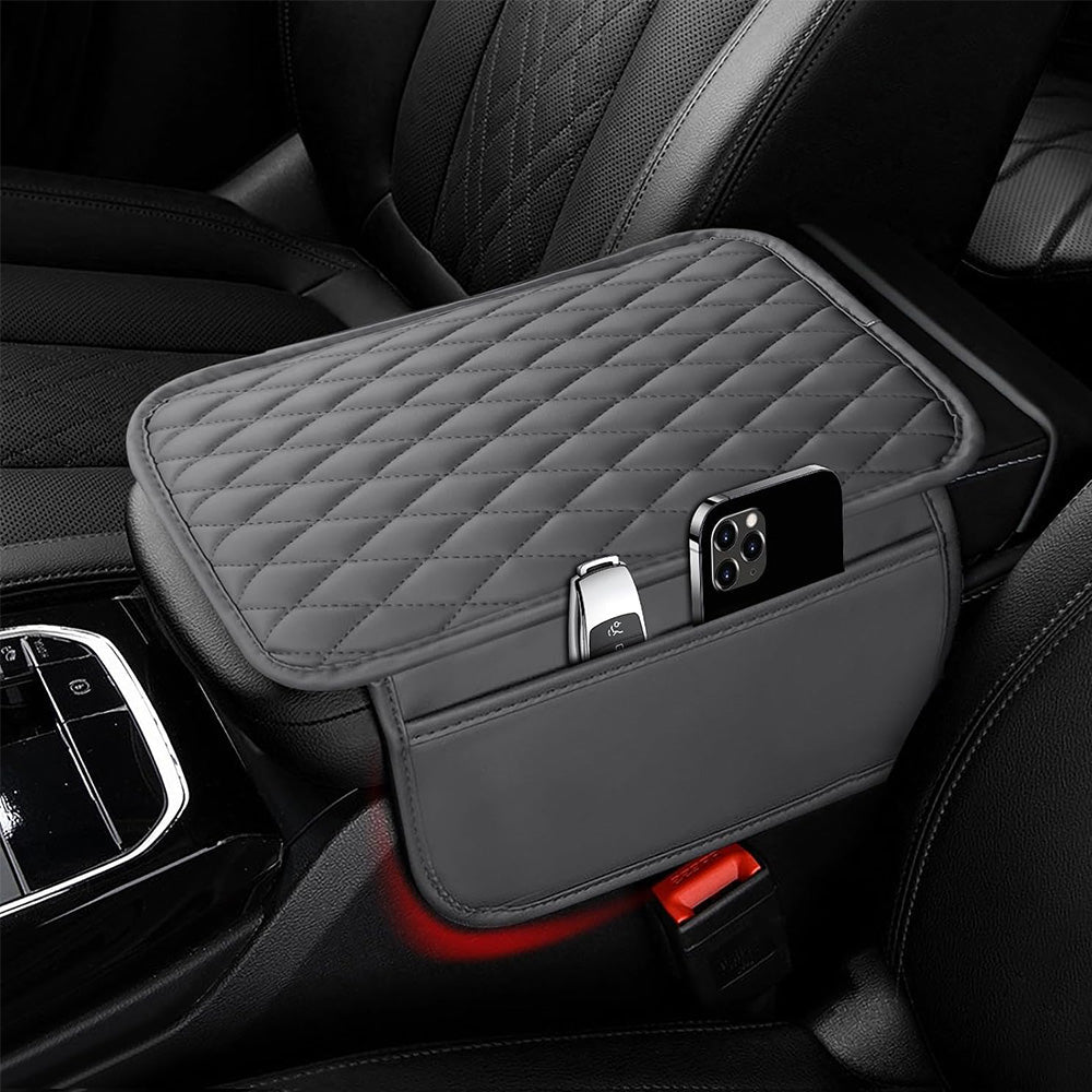 - Stylish and Functional Design: Premium console cover with two side storage pockets for easy access to phones, keys, tissues, and more.