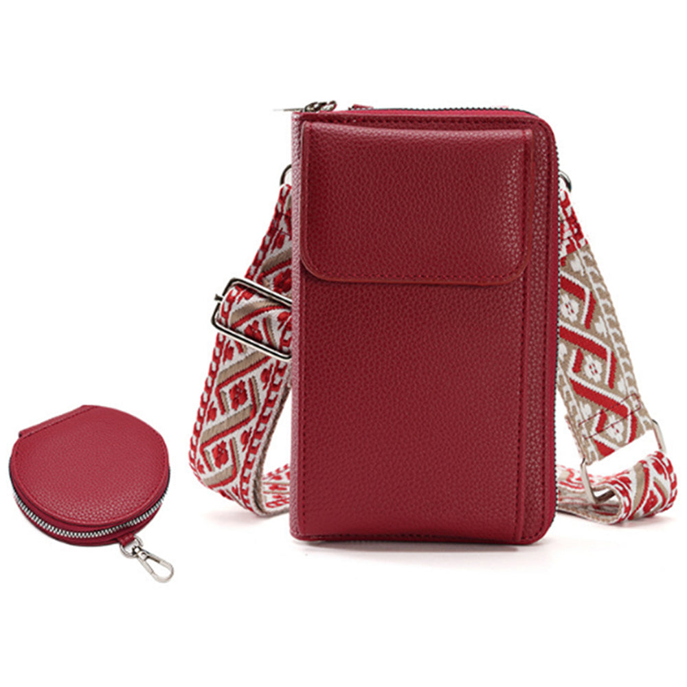 PU Leather Cell Phone Purse Women Small Crossbody Bags Cellphone Wallet Red