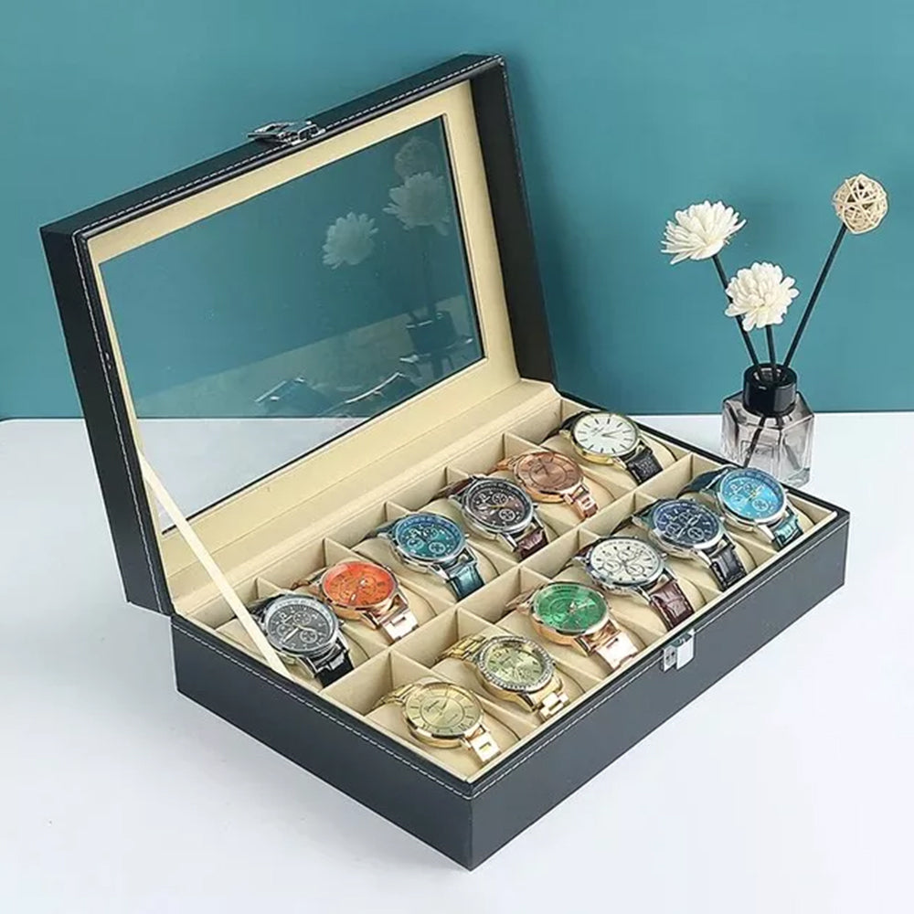 - Features a glass lid to keep your watches dust-free, allowing you to view the contents without opening the box.