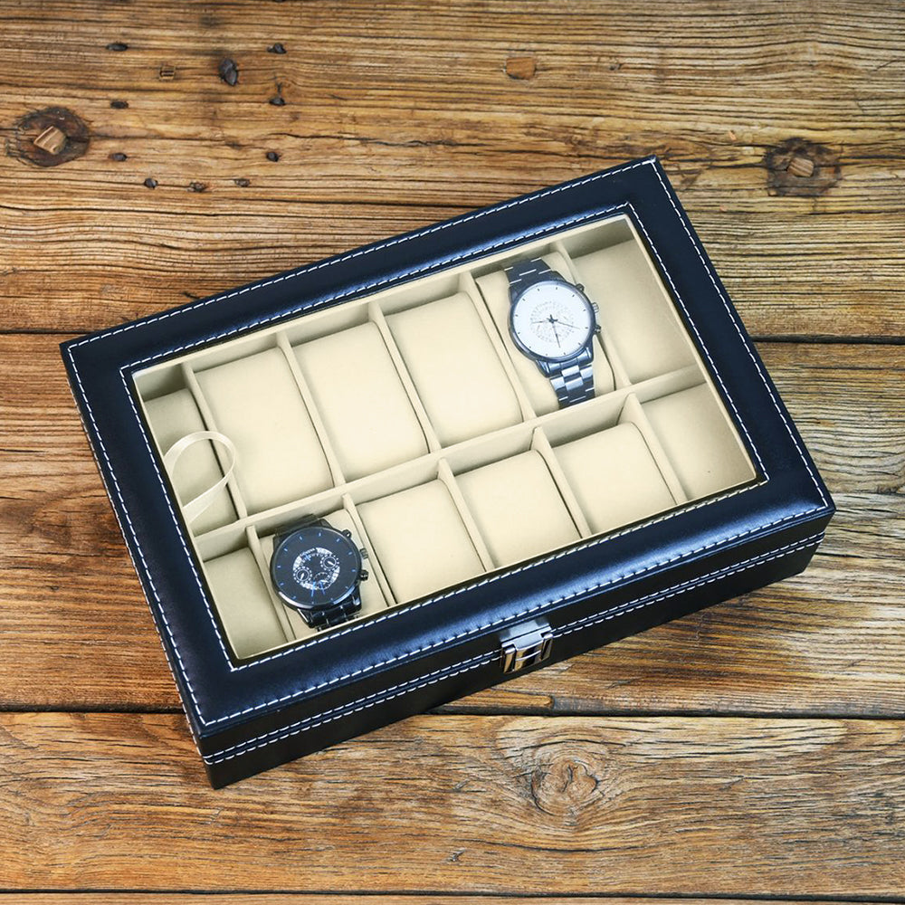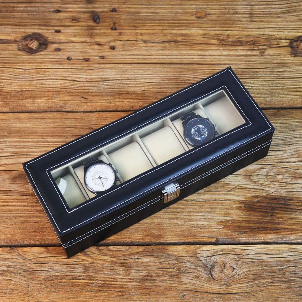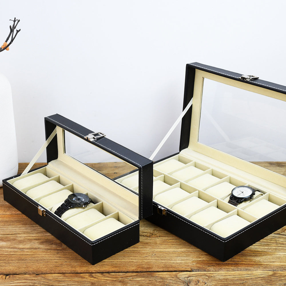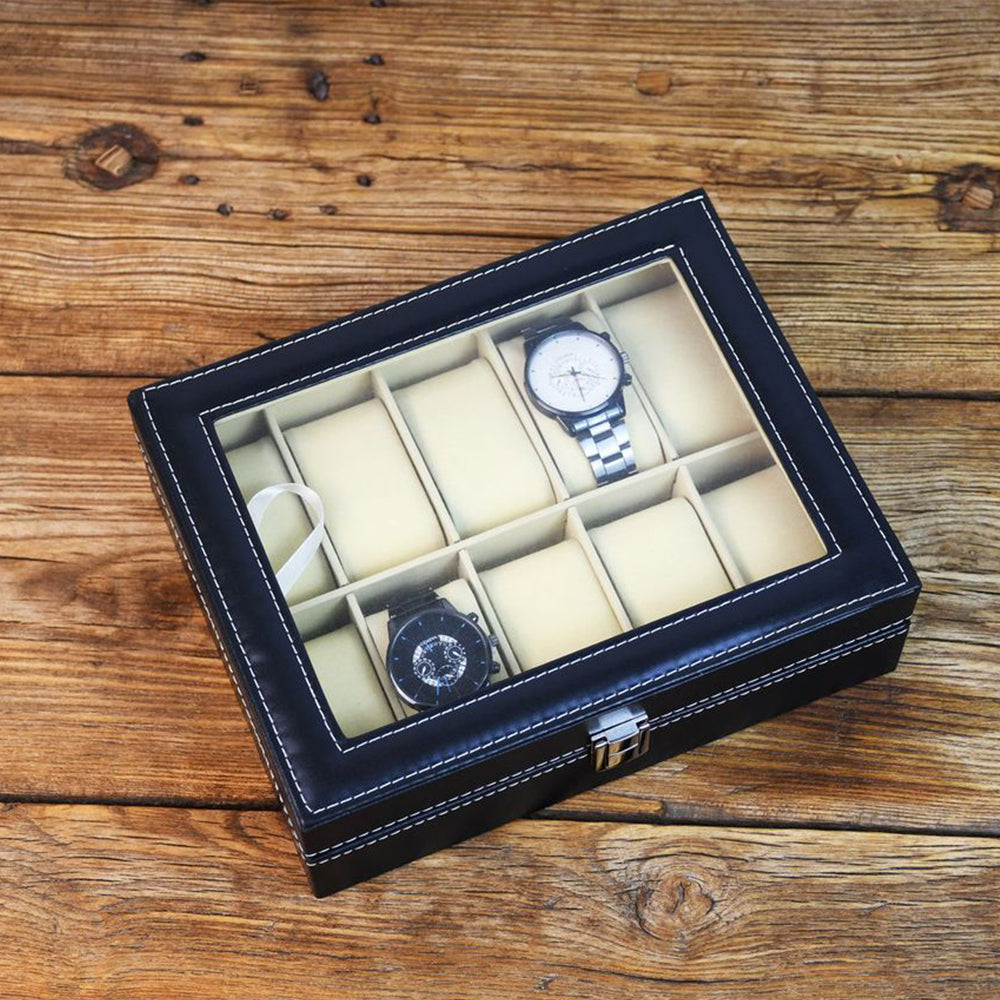 PU Leather Display Storage Box Watch Organizer Case Jewelry Showcase
