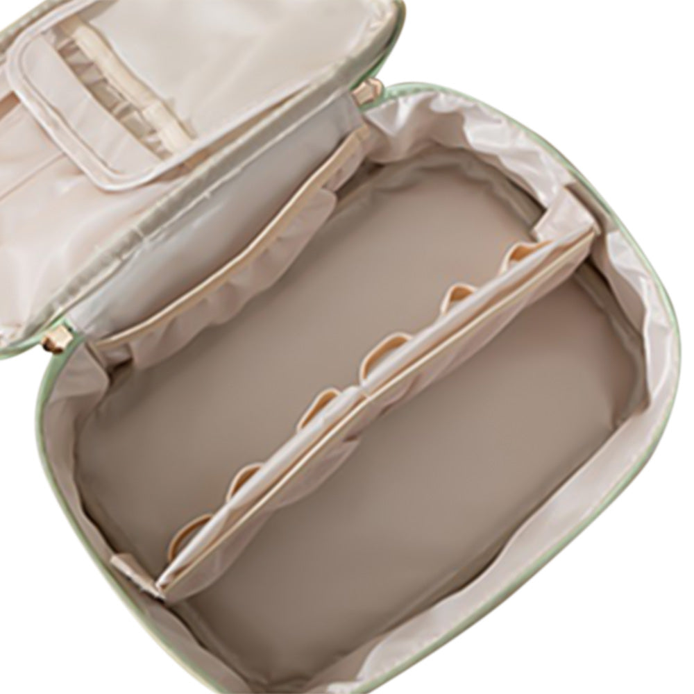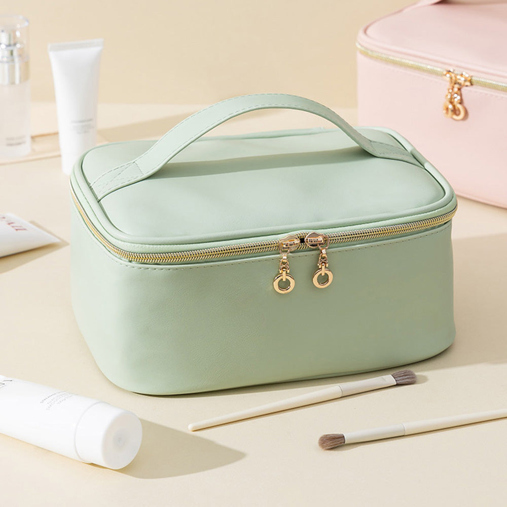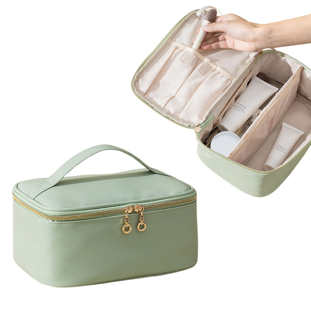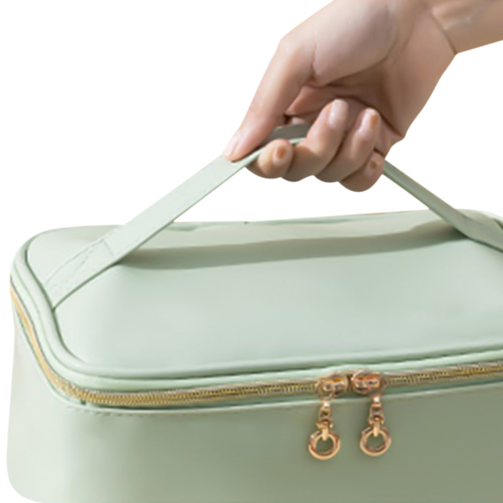 PU Leather Makeup Bag Large Capacity Travel Cosmetic Bag Toiletry Bag for with Handle and Divider Green
