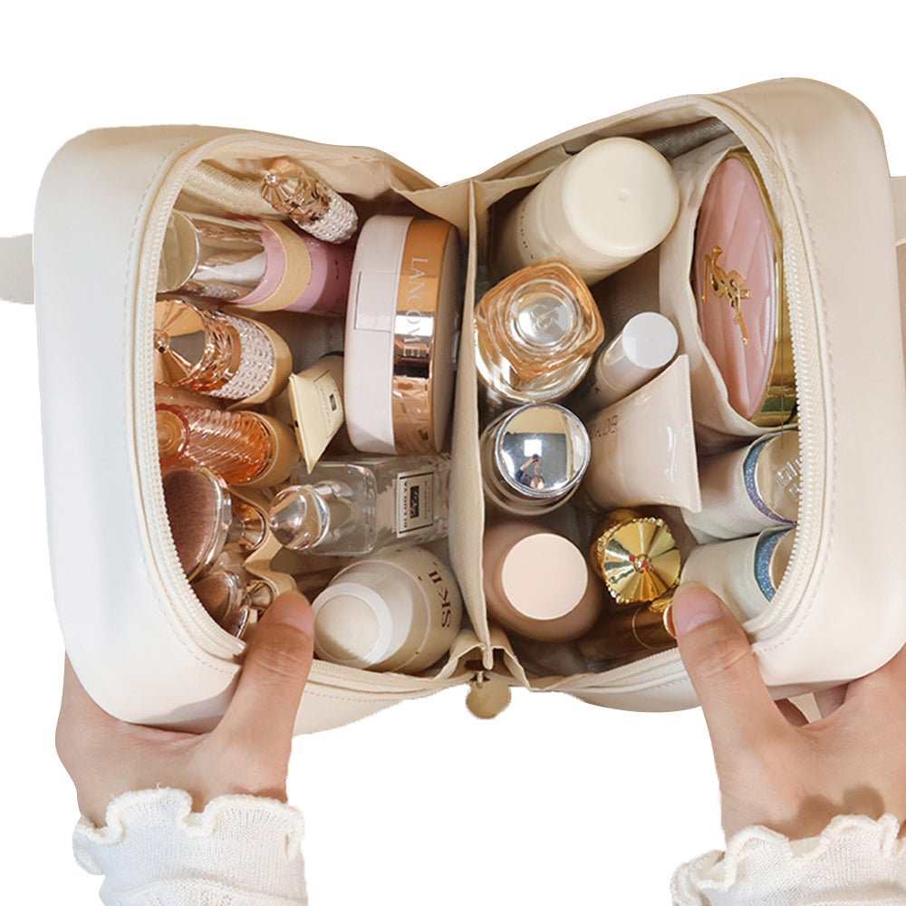 - The large opening design of the cosmetic bag allows you to easily organize all your cosmetics and toiletries.