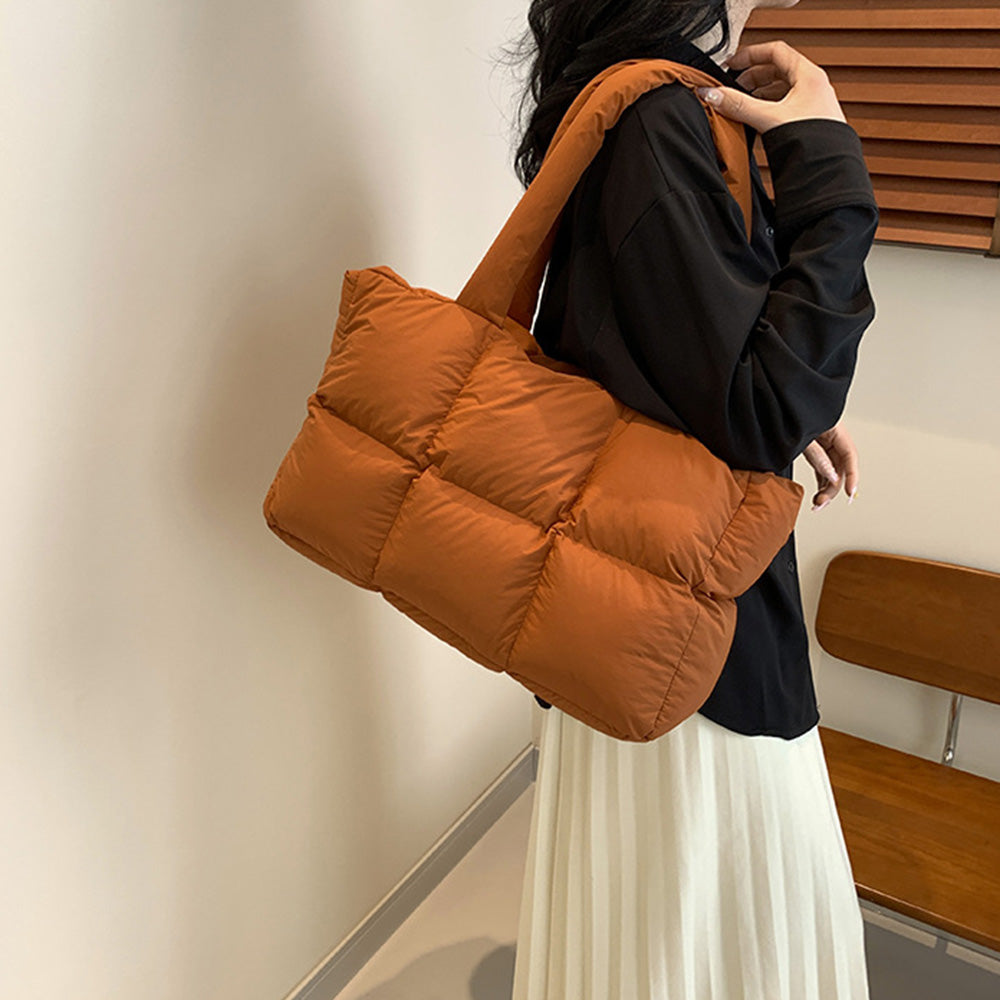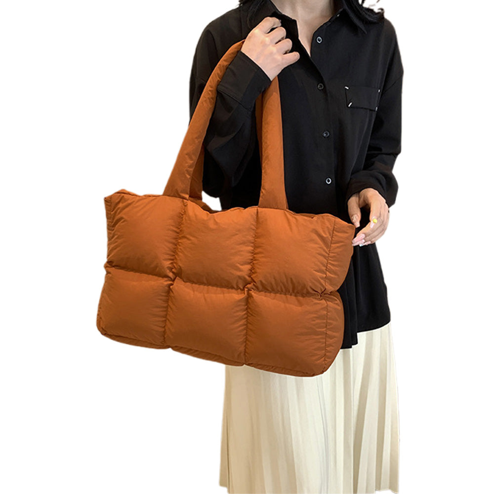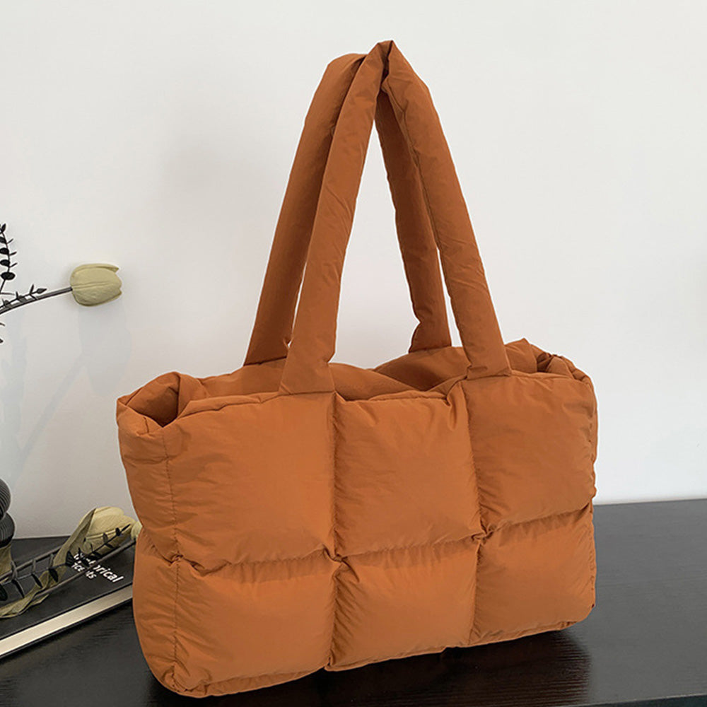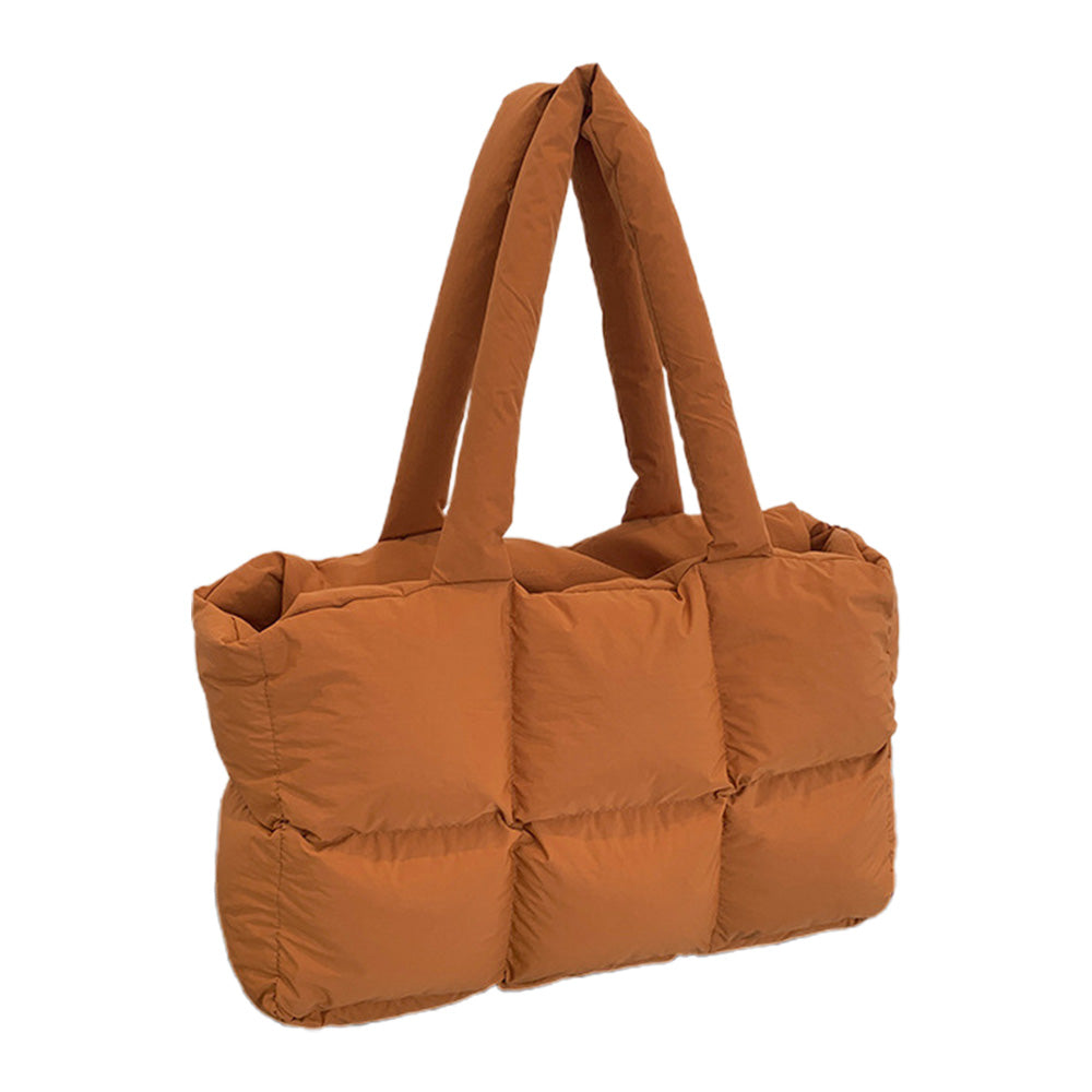Puffer Tote Bag Large Quilted Puffy Handbag Lightweight Satchel Purse Caramel