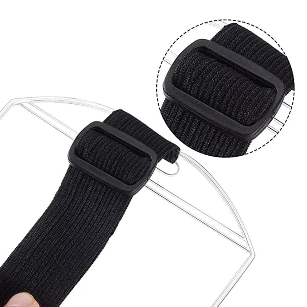 PVC arm badge holders with clear card displays and adjustable buckles for work and daily use.