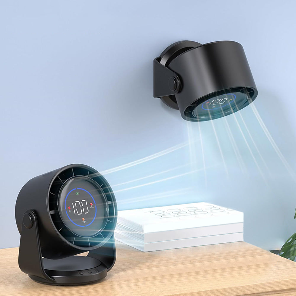 Quiet Table Fans Wall-Mounted Digital Display Rechargeable Fan for Home Office Kitchen Travel Camping Black