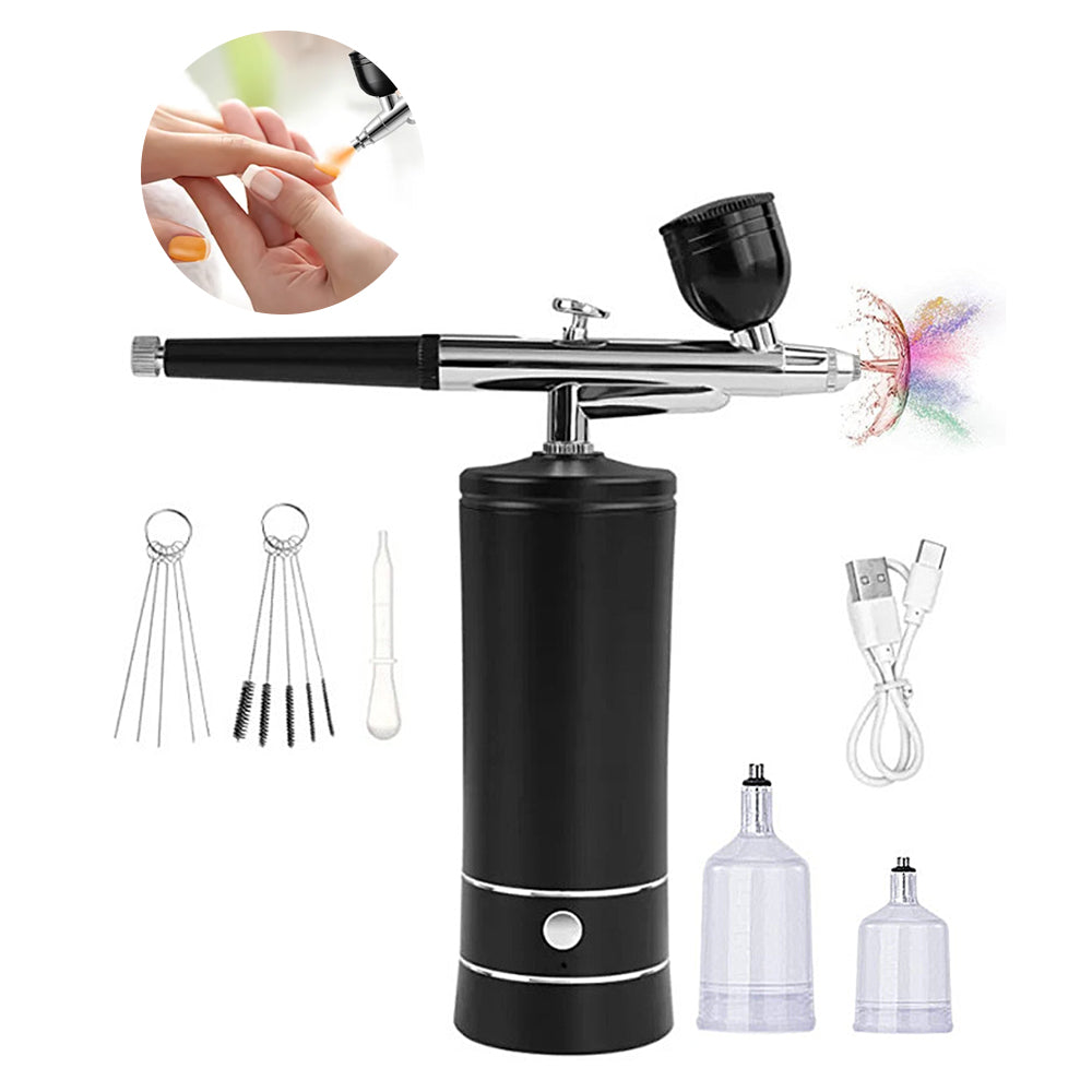 Rechargeable Cordless Airbrush Kit With Compressor for Nail Art Makeup Painting Art Cake Black