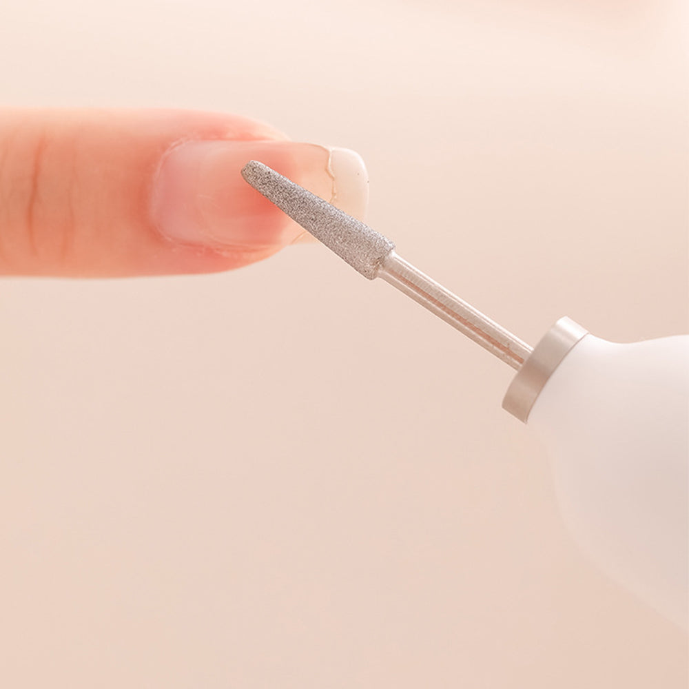 - Interchangeable Grinding Heads: Sanding Band Mandrel can removes gel polish and smooths thick nails. Large Cylindrical Bit works on large nails and tough skin areas. Cone Bit ideal for detailed shaping and edge buffing. Small Cylindrical Bit suited for smaller nails and delicate areas. Needle Bit Shapes tips and corners, smooths edges. Bullet Bit buffs uneven surfaces and removes base coat near edges.