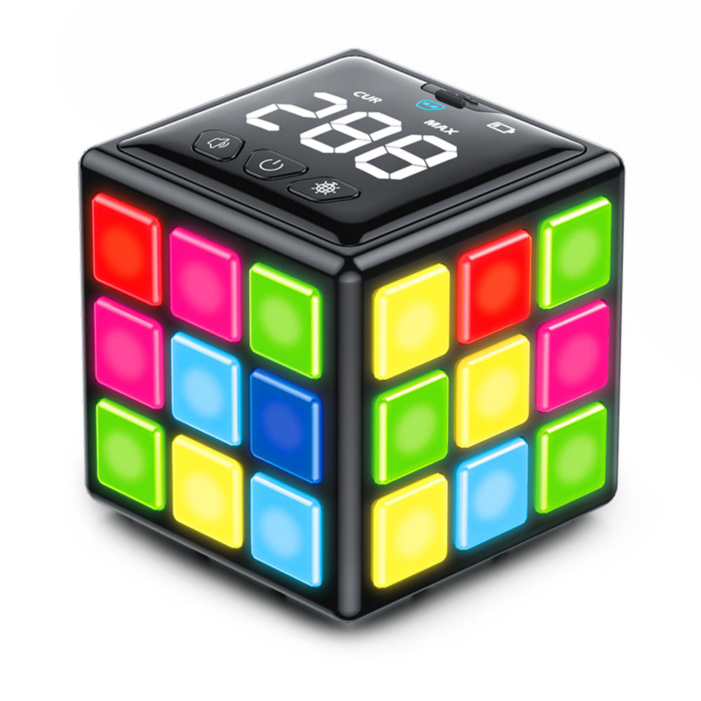 Engage kids and teens in fun and challenging brain games with this rechargeable handheld cube featuring 15 interactive games and a score display.