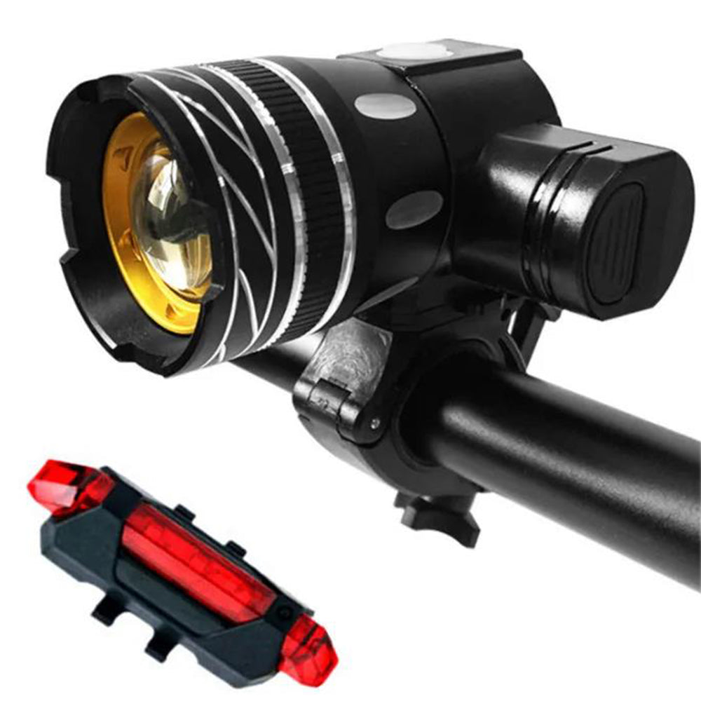 Rechargeable LED Bike Light Adjusatble T6 LED MTB Bicycle Front Rear Headlight Set