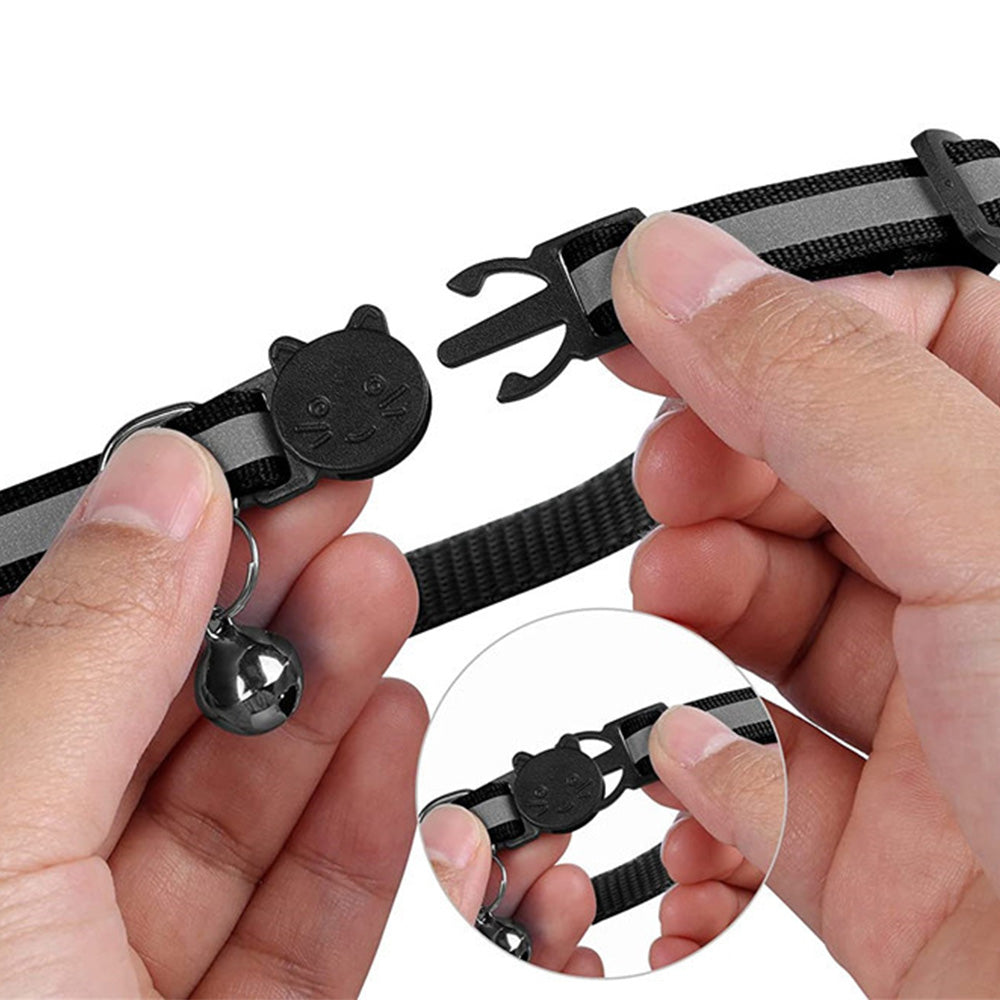 Keep your cat secure and visible with this reflective nylon collar featuring a safety buckle and Bell.