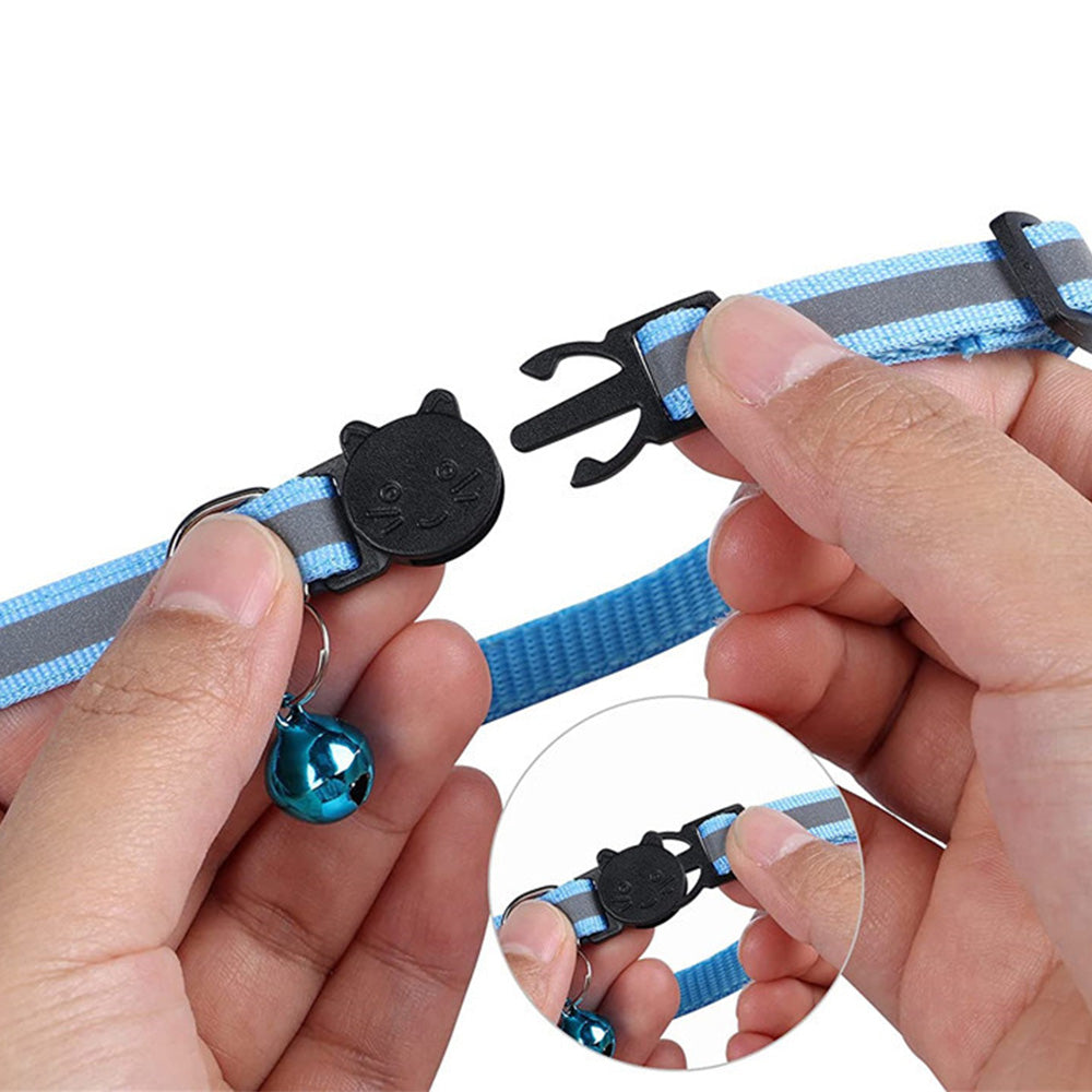 Keep your cat secure and visible with this reflective nylon collar featuring a safety buckle and Bell.