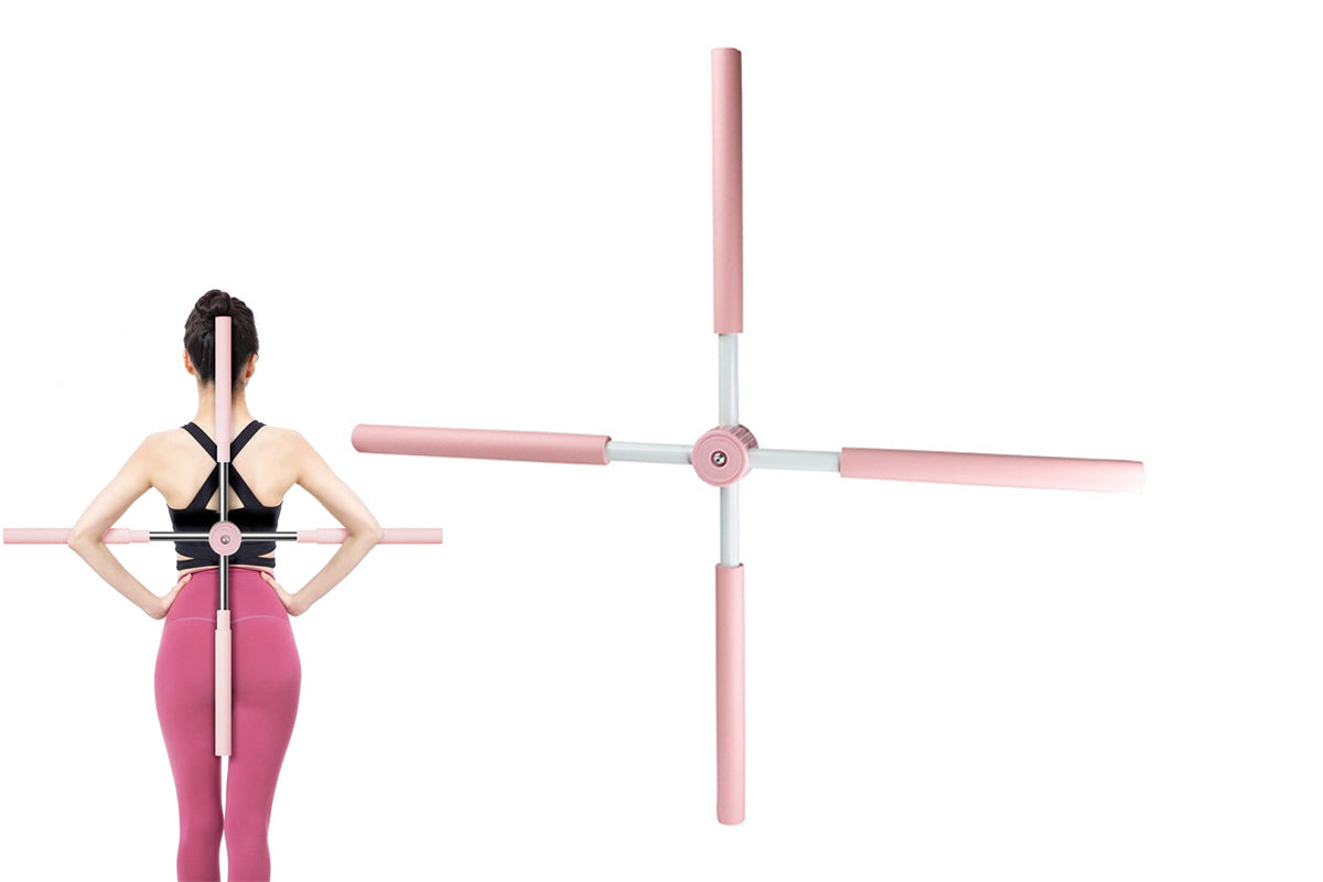 Retractable Yoga Posture Corrector Stick Adult And Child Back Stretching Tool-Pink