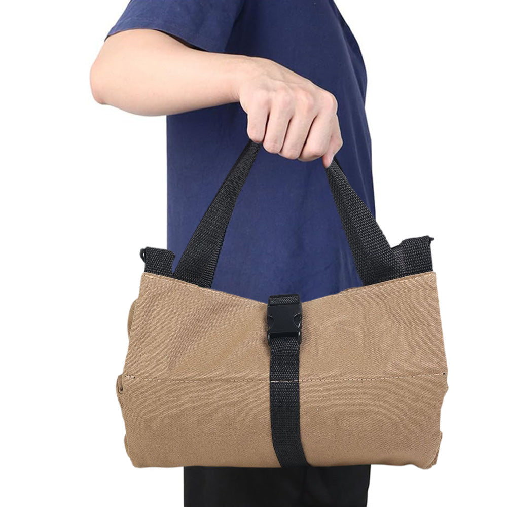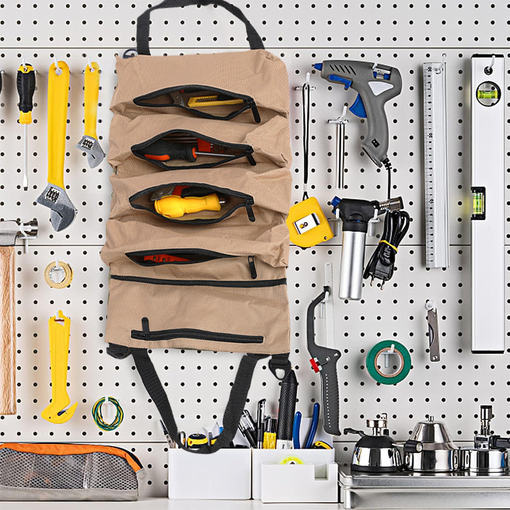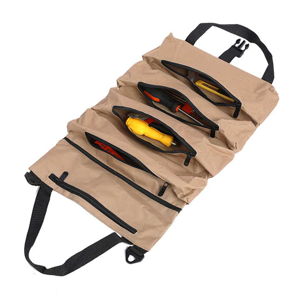Roll Up Tool Bag Water Resistant Tool Organizer Zipper Pouch for Electricians Repairman Khaki