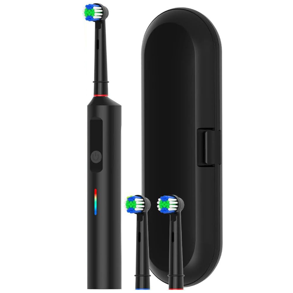 Rotary Electric Toothbrush 3 Modes Ultrasonic Toothbrush with Travel Case and 2 Replacement Brush Heads Black