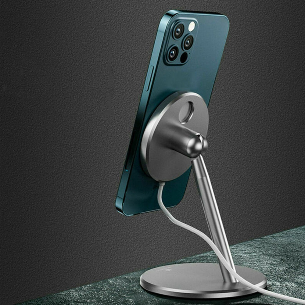 Rotation Wireless Charger Stand Phone Charger Holder Aluminium Alloy Bracket Wireless Fast Charging Stand for Apple MagSafe Charger Gray