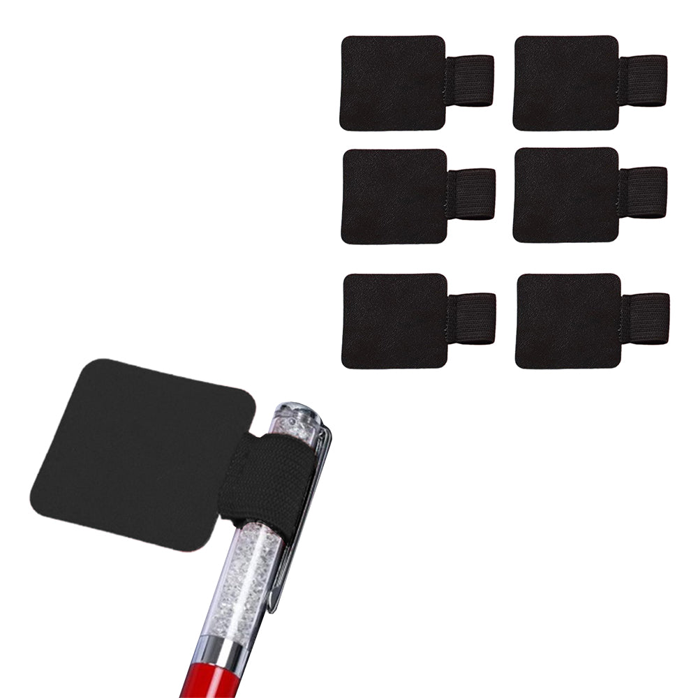 6pcs Set Self Adhesive PU Leather Pen Holder for Apple Pencil Elastic Pen Loop for Journal Notebook Tablet Black