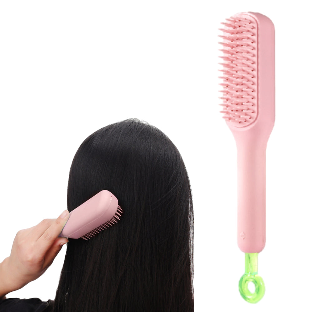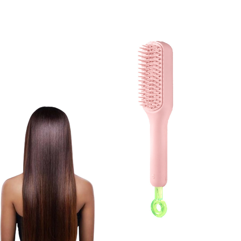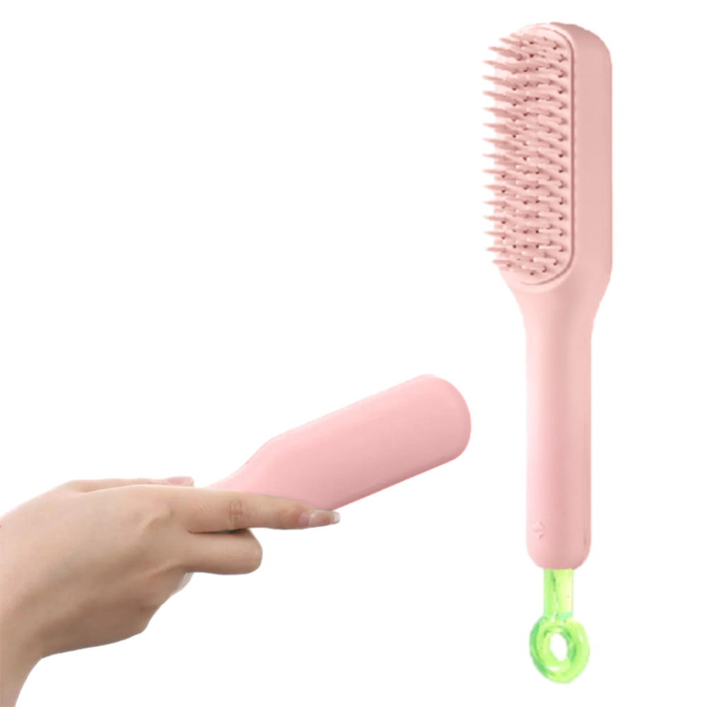 Self Cleaning Hair Brush Anti-Static Massage Comb with Retractable Bristles Pink