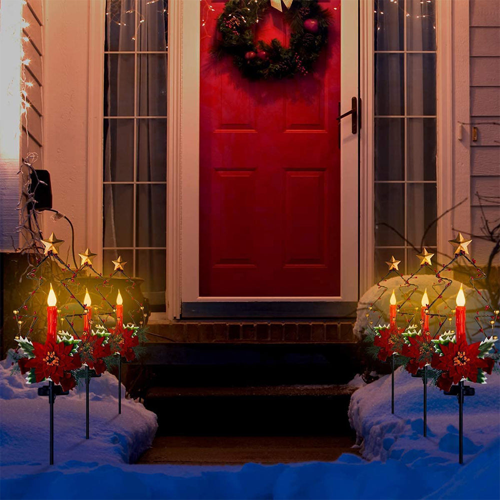 - Hassle-free installation: These solar powered candle Xmas pathway lights no wiring and screw required, simply install it anywhere you like and enjoy the Christmas atmosphere.
