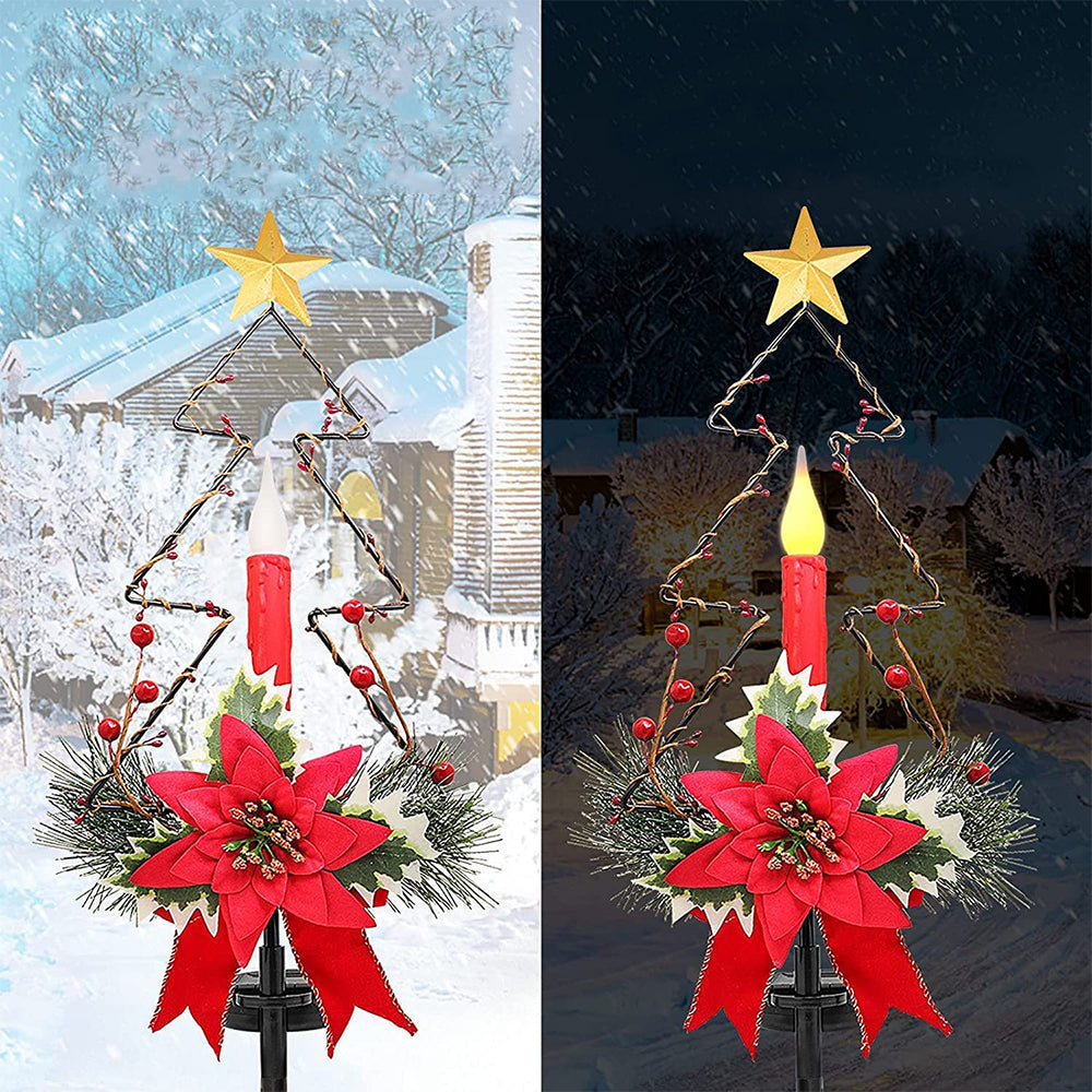 Set of 2 Pack Solar LED Christmas Tree Candle Lights for Outdoor Yard Lawn Decor